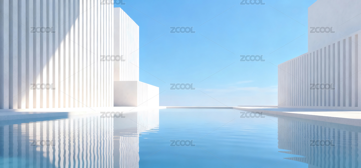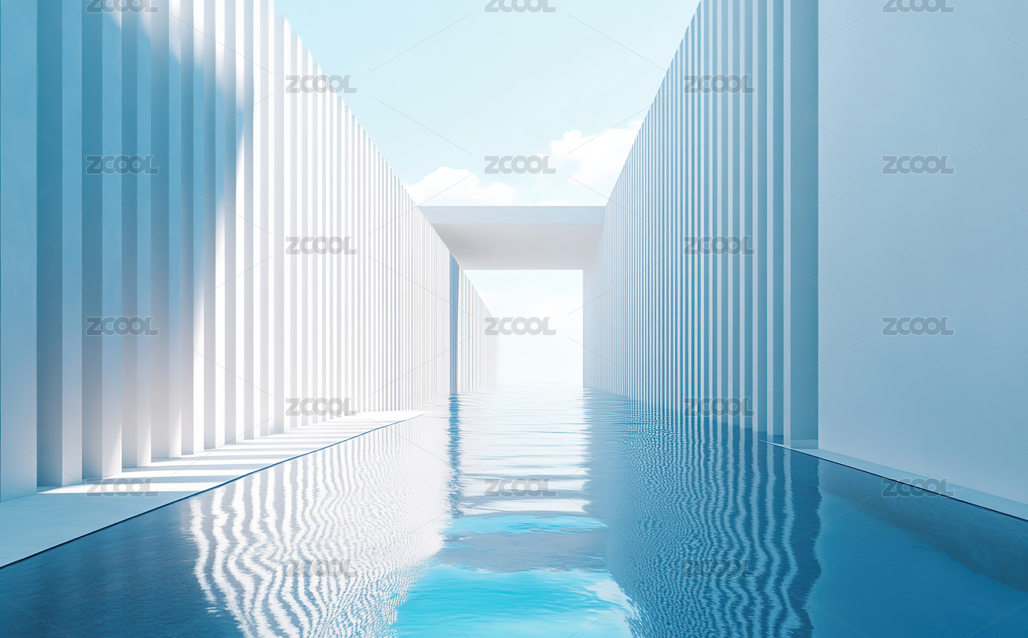 现代,极简,建筑,场景,背景,白昼,蓝天,白云,三维,3D