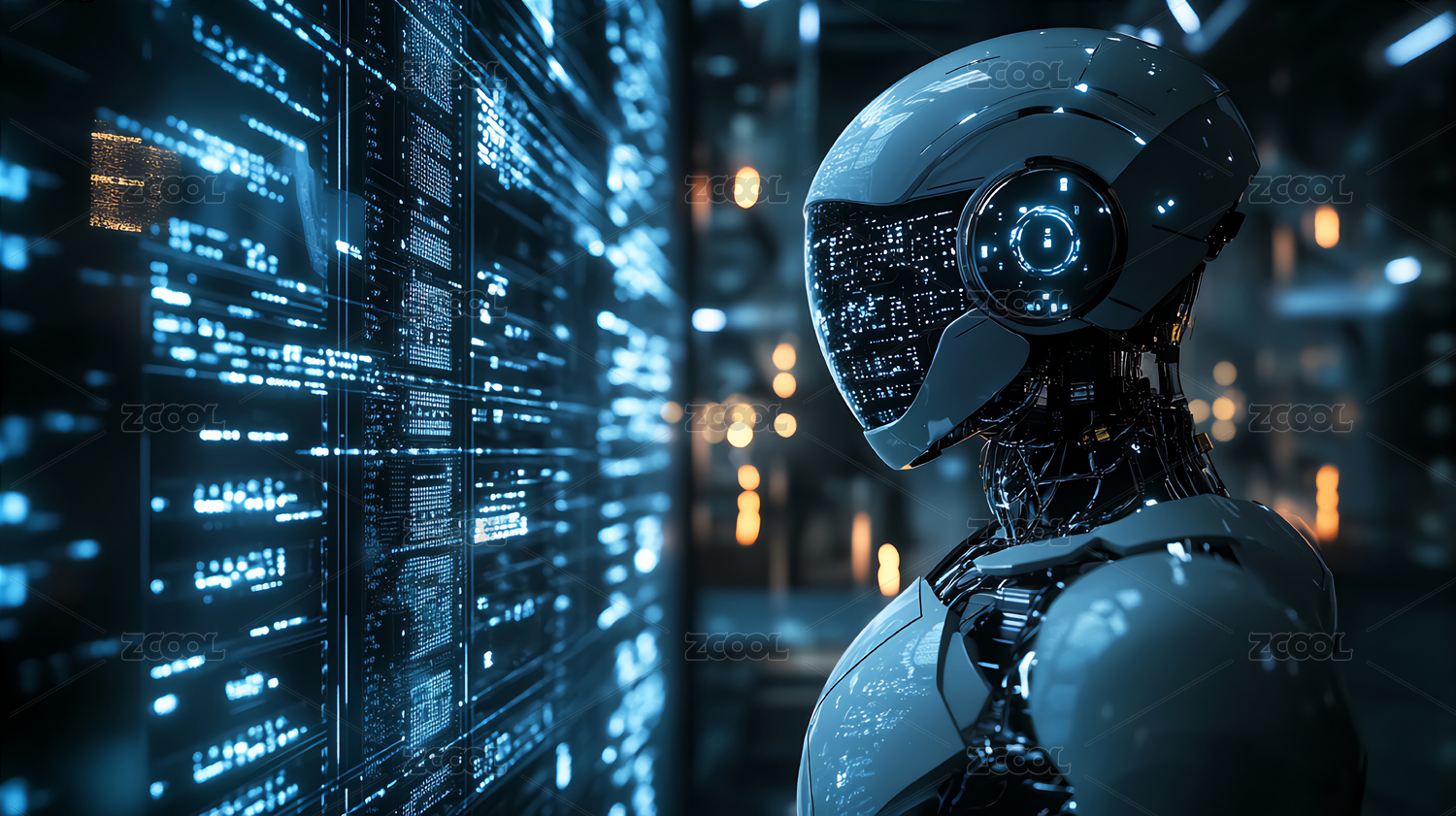 数字,影像,全息,屏幕,人工智能,数据流,传输,机器人,凝视,室内