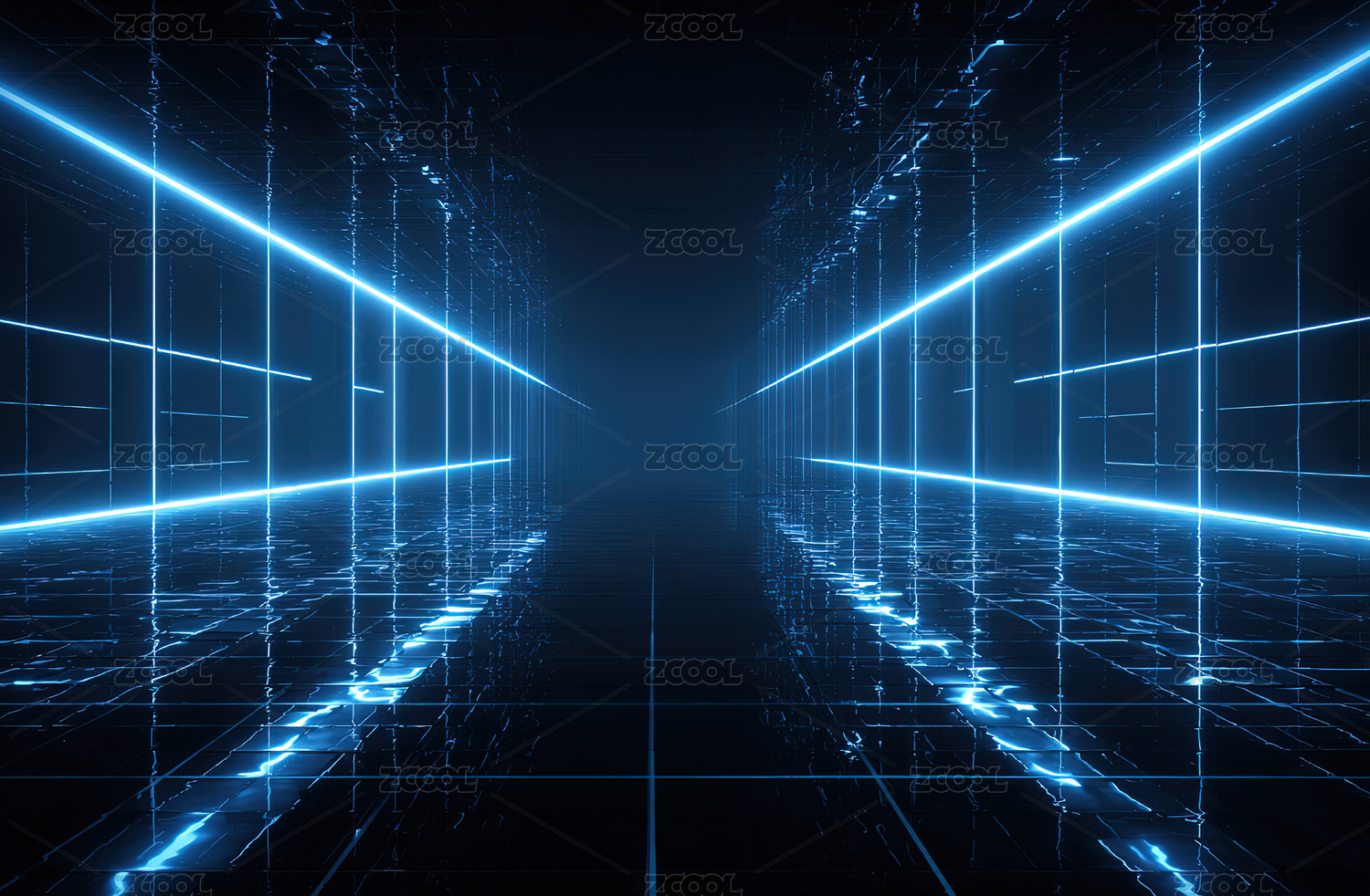 未来科技走廊的蓝色光影