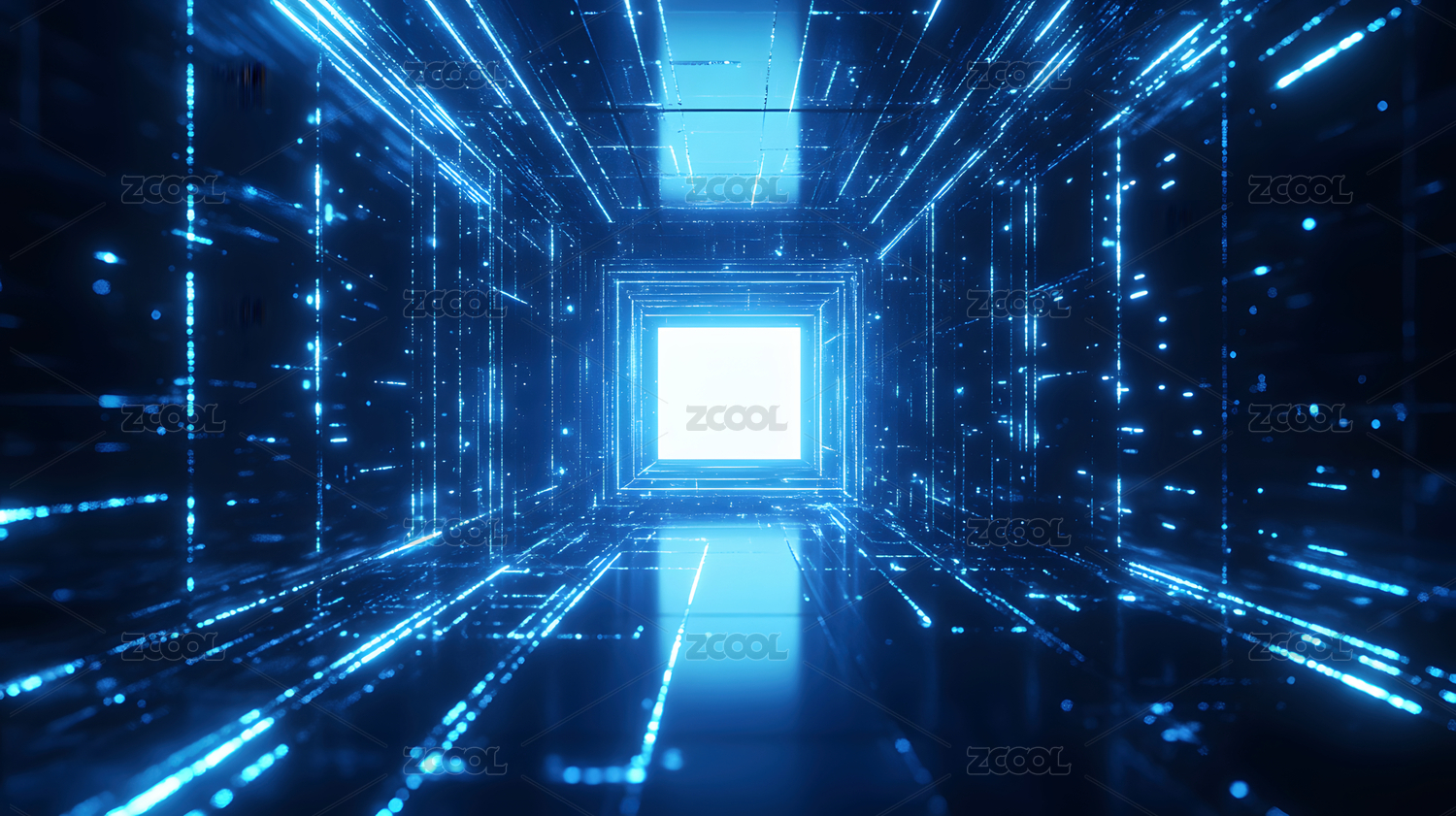 蓝色灯条 纵向走廊 背景