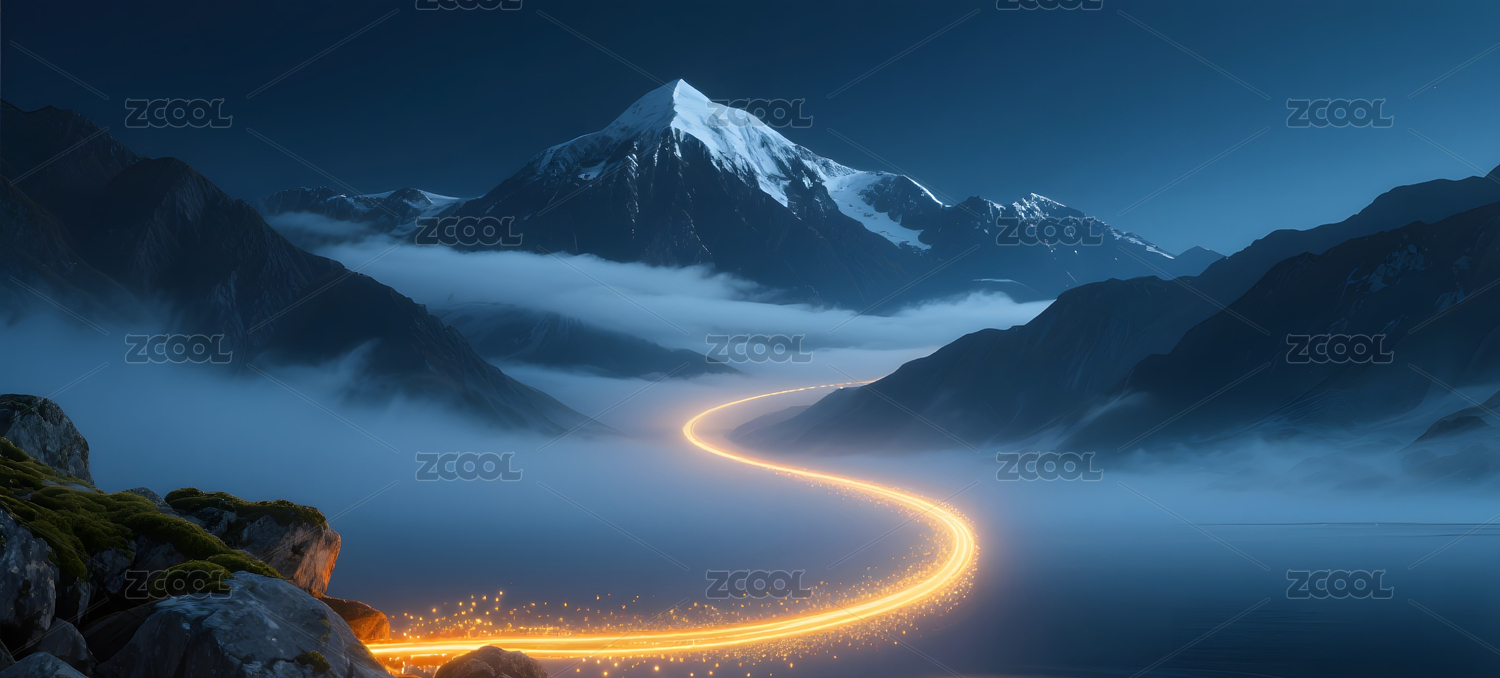 发光山脉奇幻景背景场景
