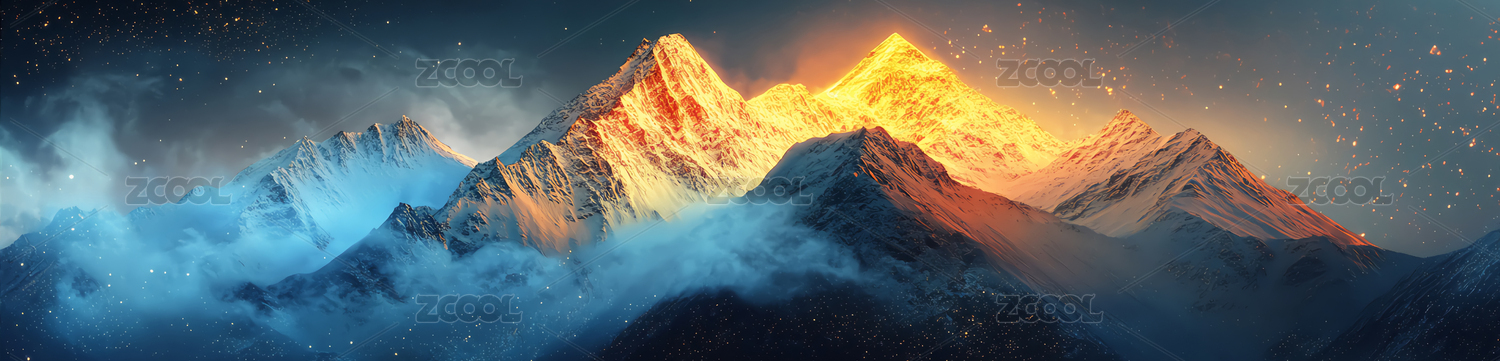 日照金山,高山,雪山,金色,阳光,光芒,寒冷,冬天,天空,地形