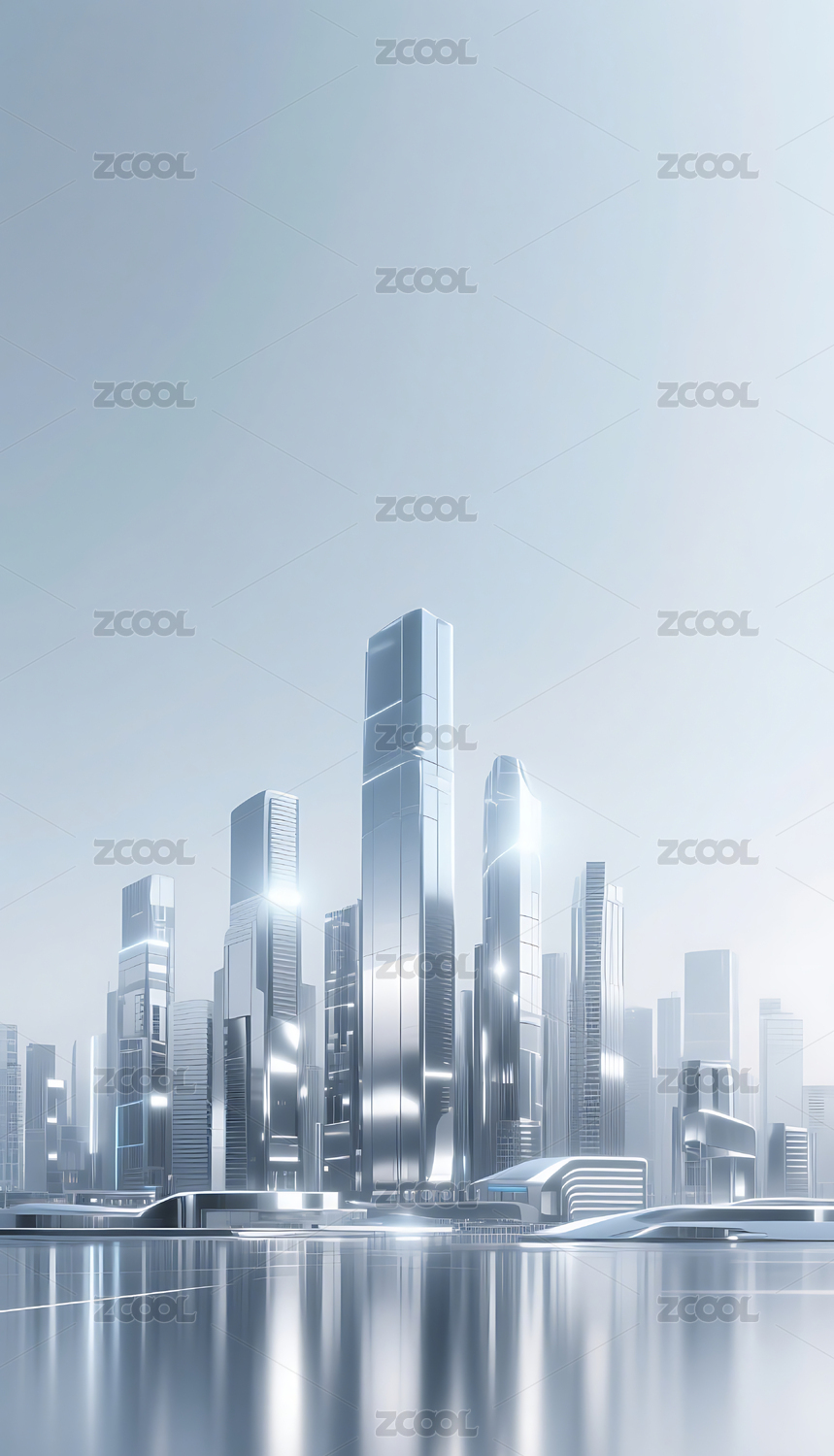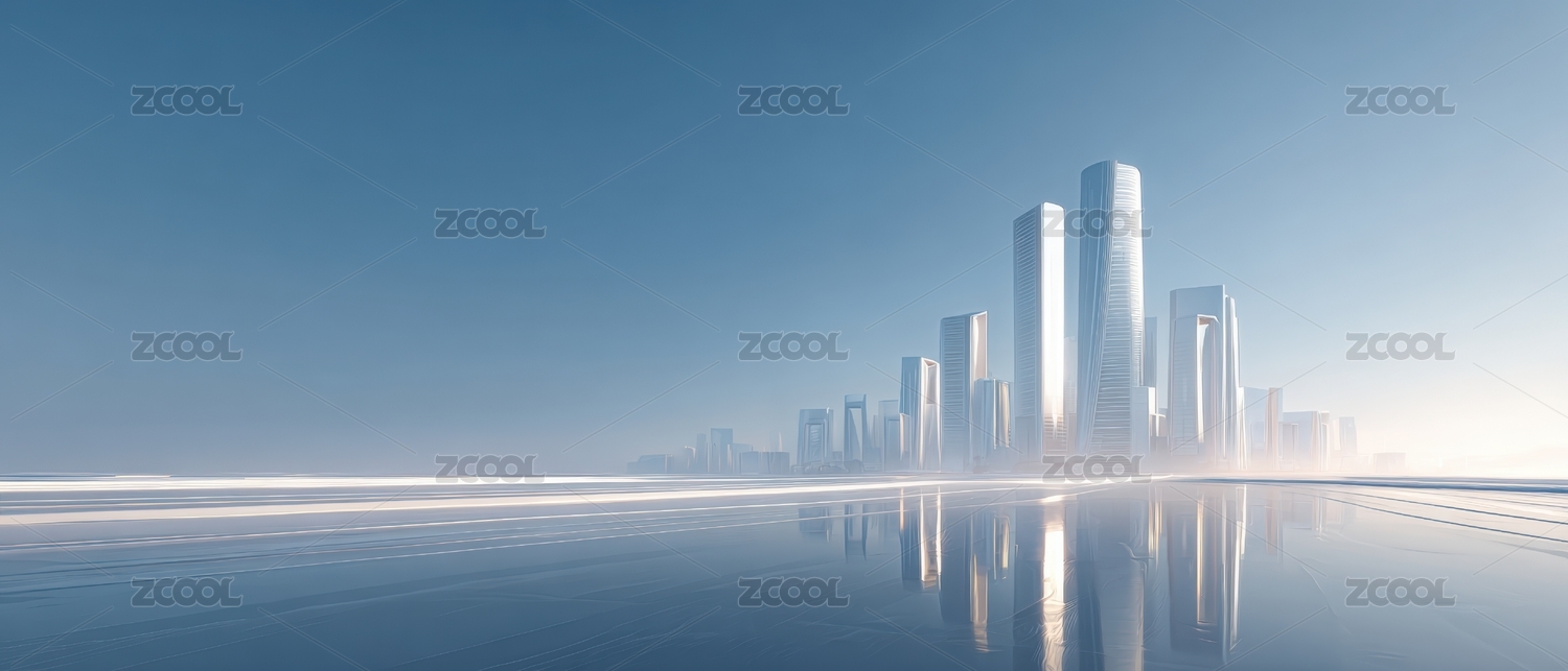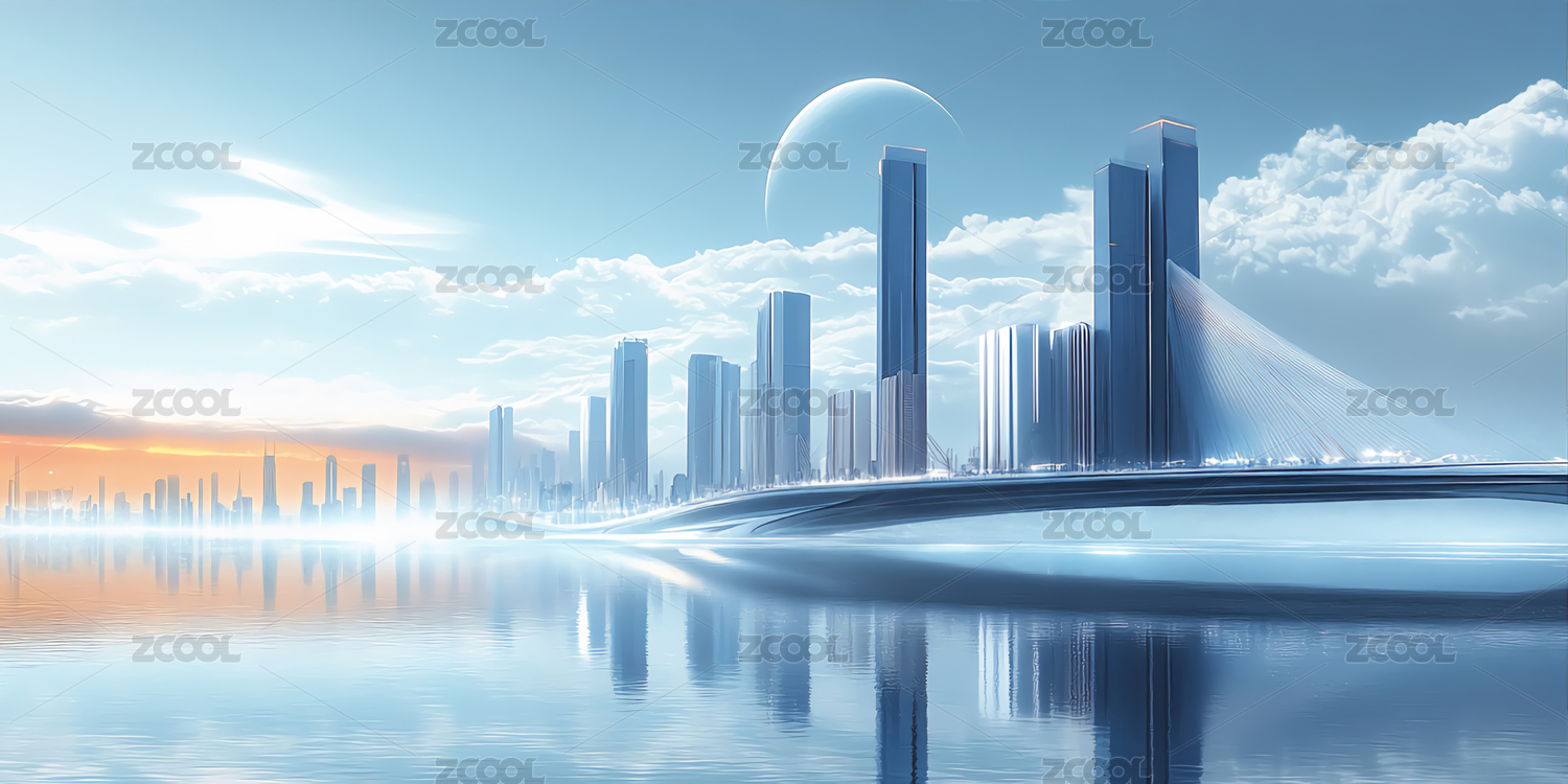 未来,科技,城市,天际线,摩天大厦,高架桥,蓝天,滨水,反射,云朵