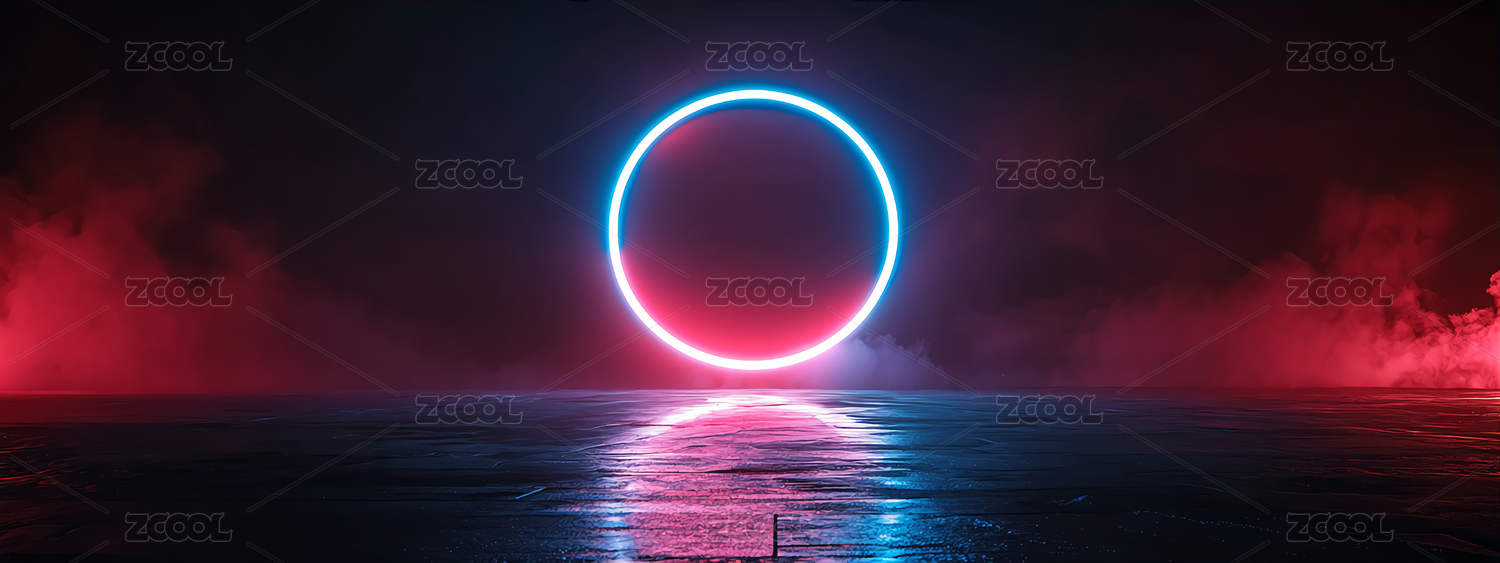 赛博朋克,商务,主视觉,渐变,光影,霓虹灯,背景,地平线,光速,轨迹