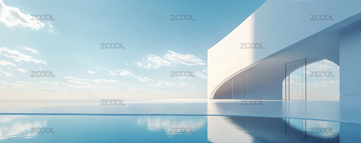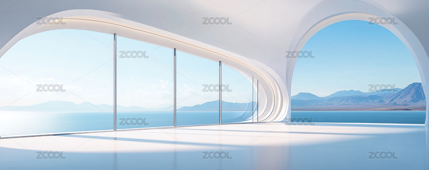 现代,极简,建筑,白色,弧形,玻璃窗,酒店,度假,别墅,蓝天