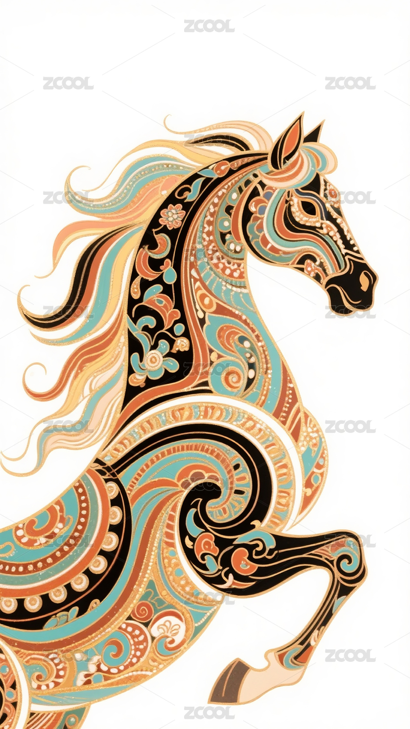 华丽彩绘奔马艺术图案