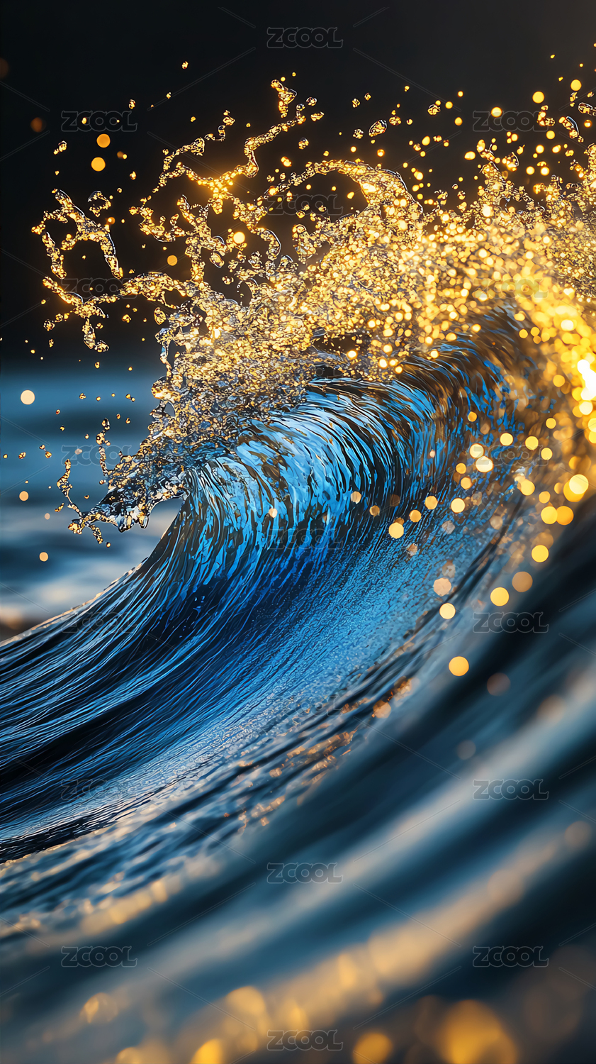 流光溢彩,鎏金,海浪,光芒,超现实,抽象,概念,科技,商务,浪花