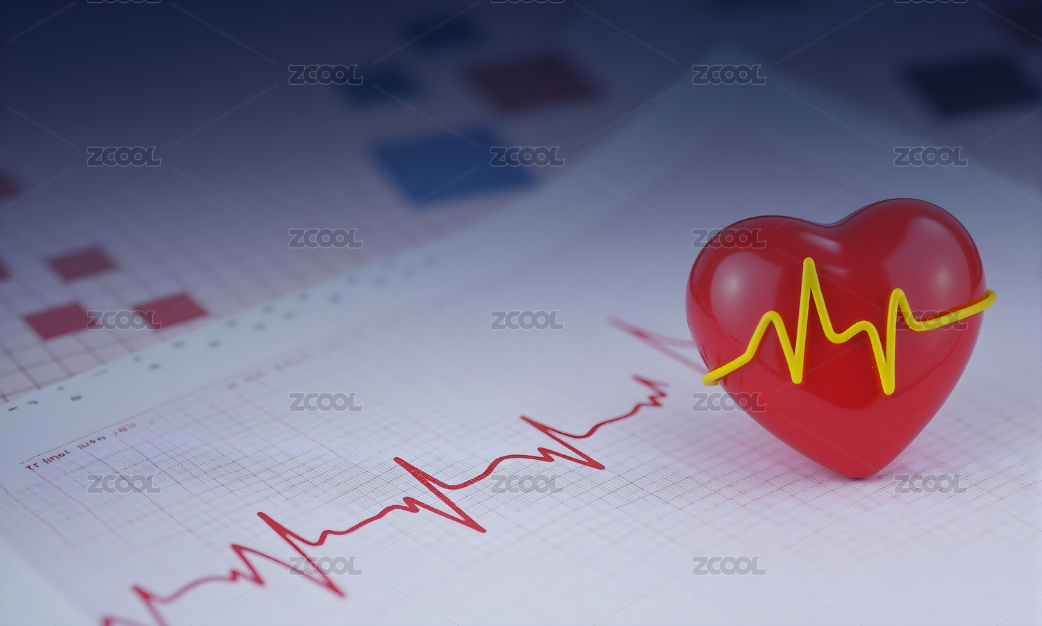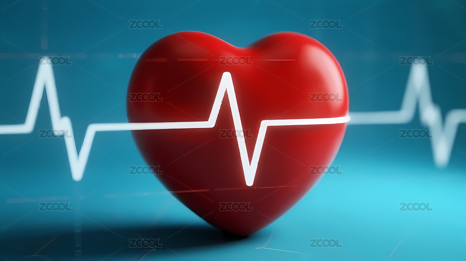 红色心形蓝色心电图