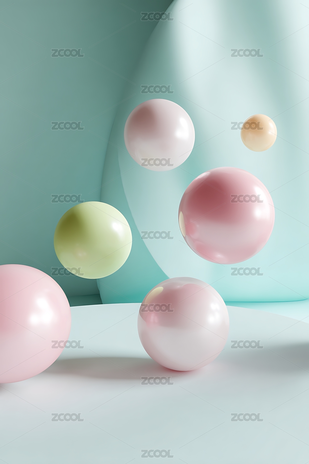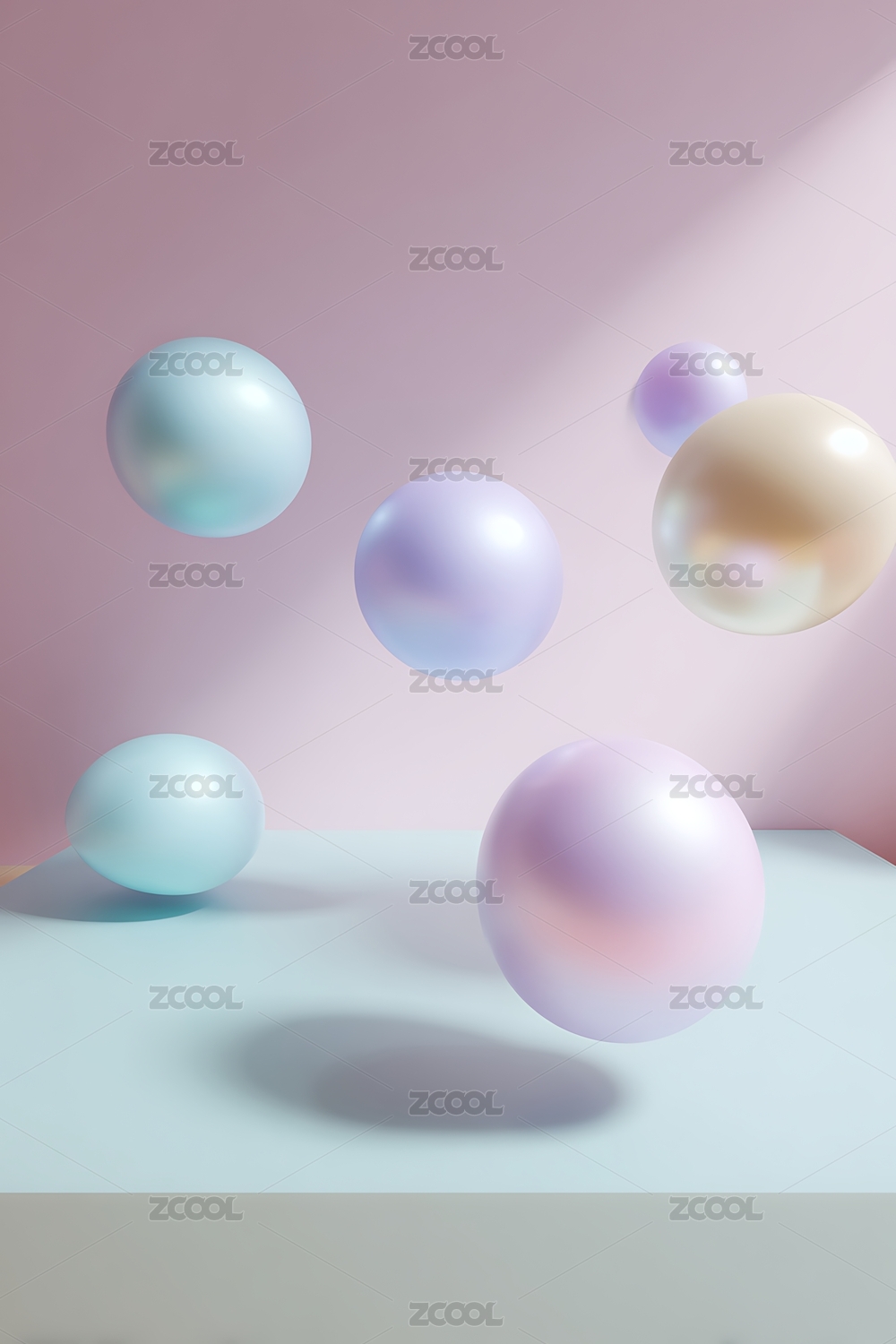 光影,柔和,梦幻,背景,清新,球体,彩色,悬浮,珍珠,透明