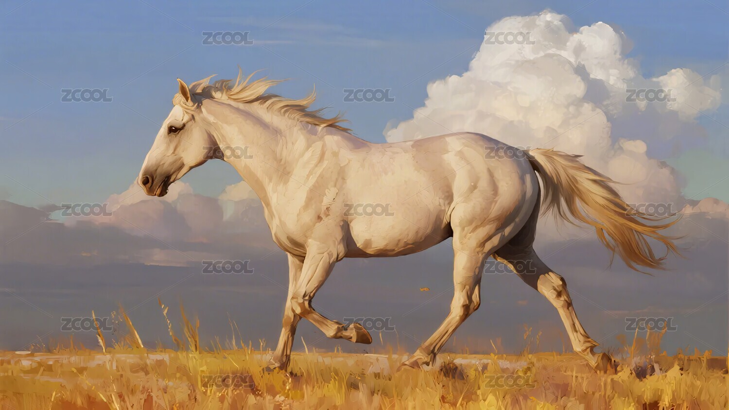 奔腾的白色骏马