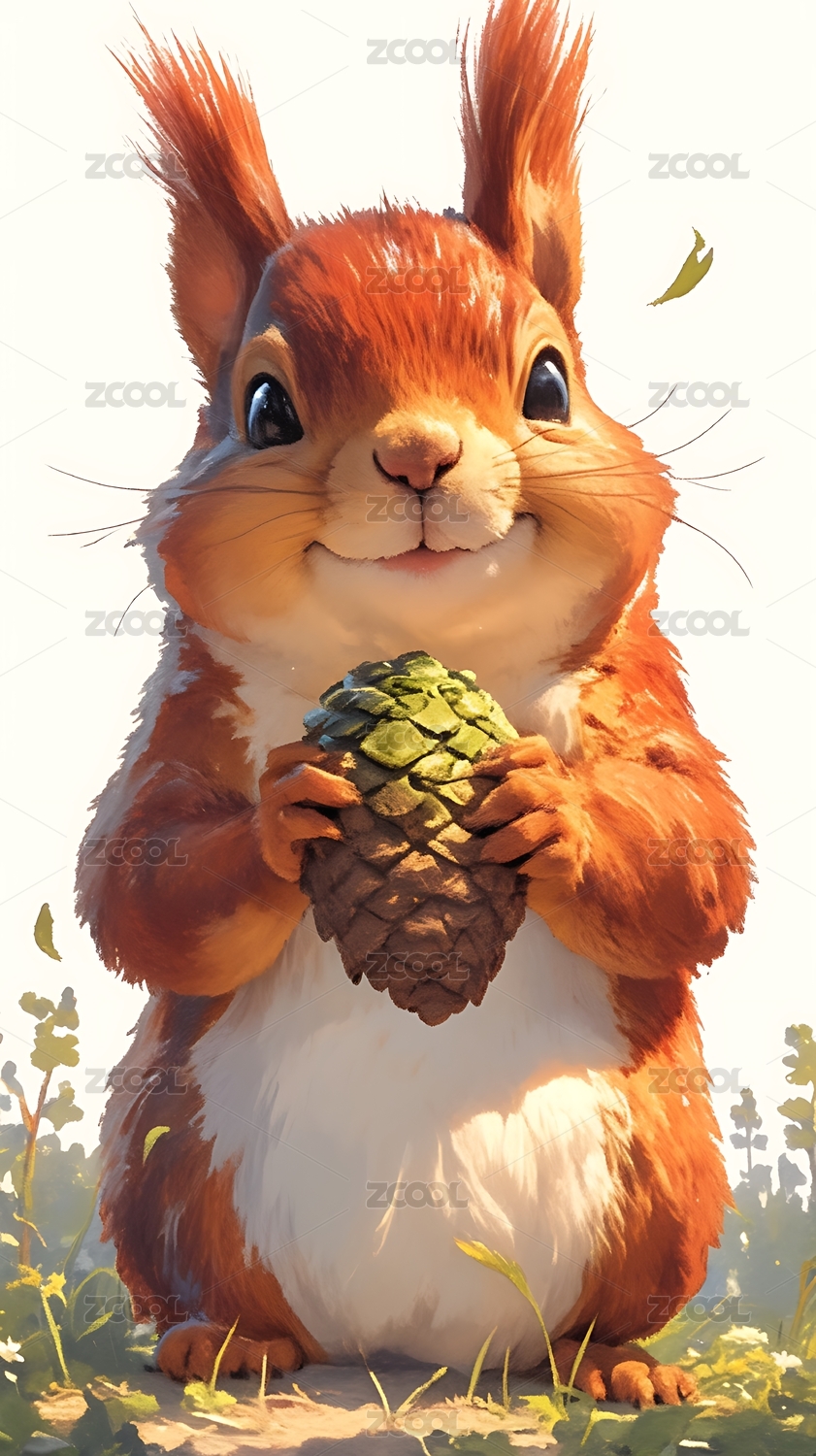 松鼠,松果,动物,青松果,可爱,插画,萌趣,自然,柔和,简约