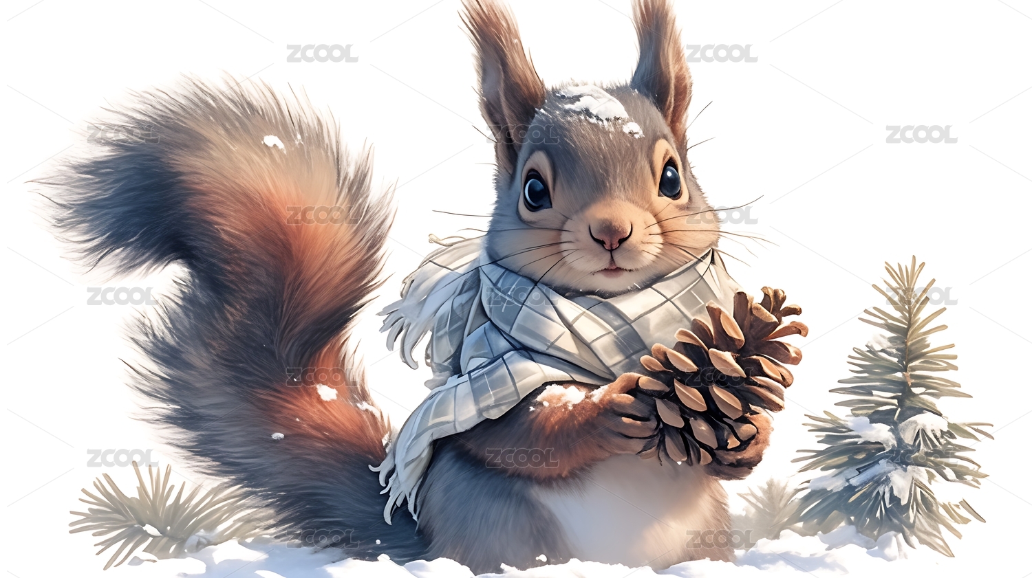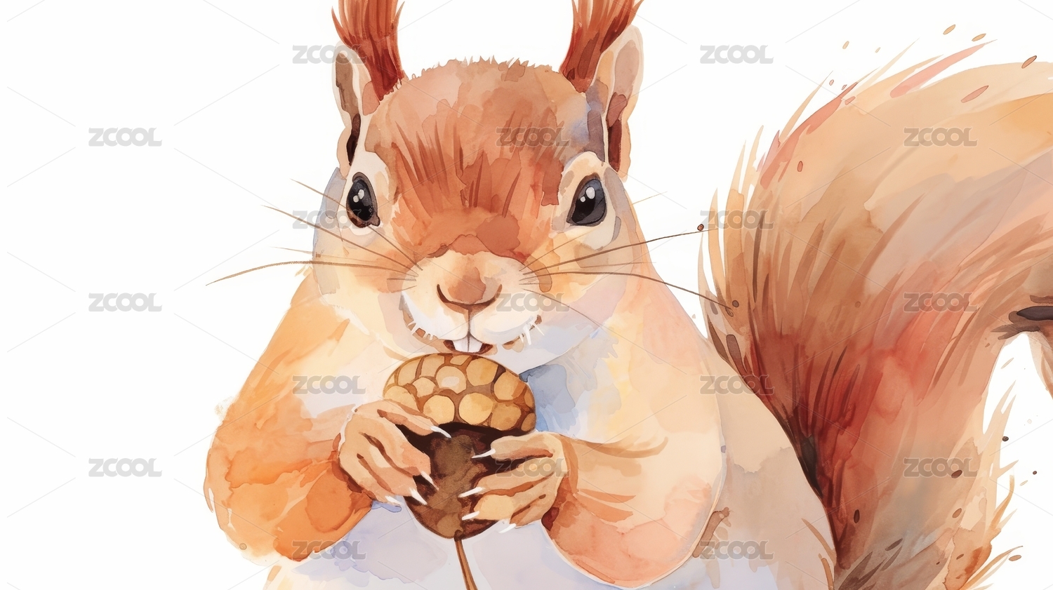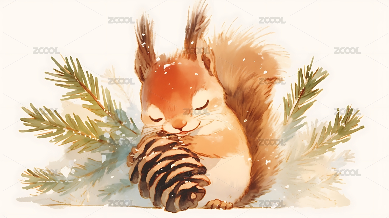 松鼠,松果,动物,水彩,插画,艺术,自然,可爱,生动,松枝