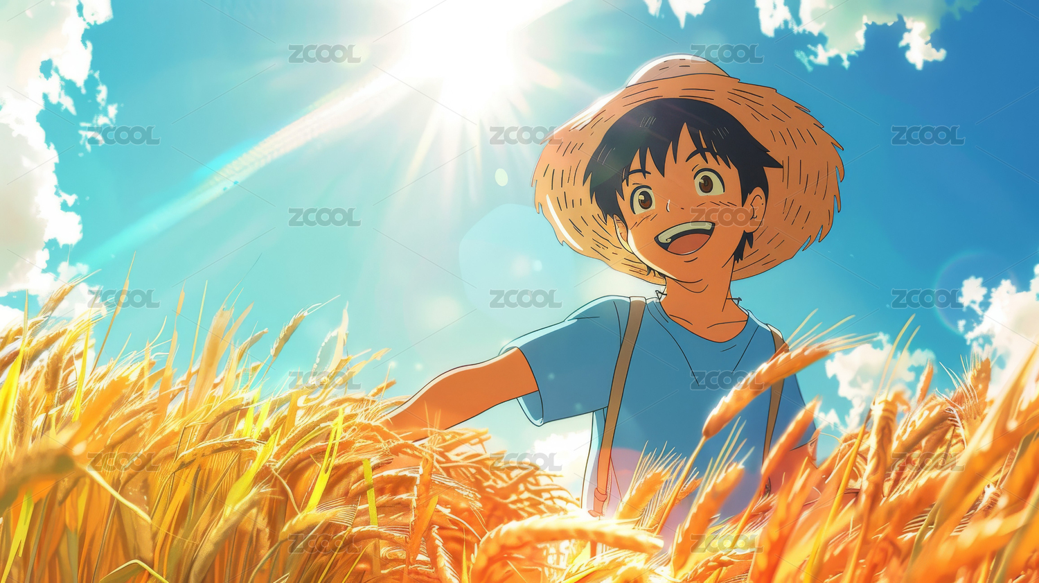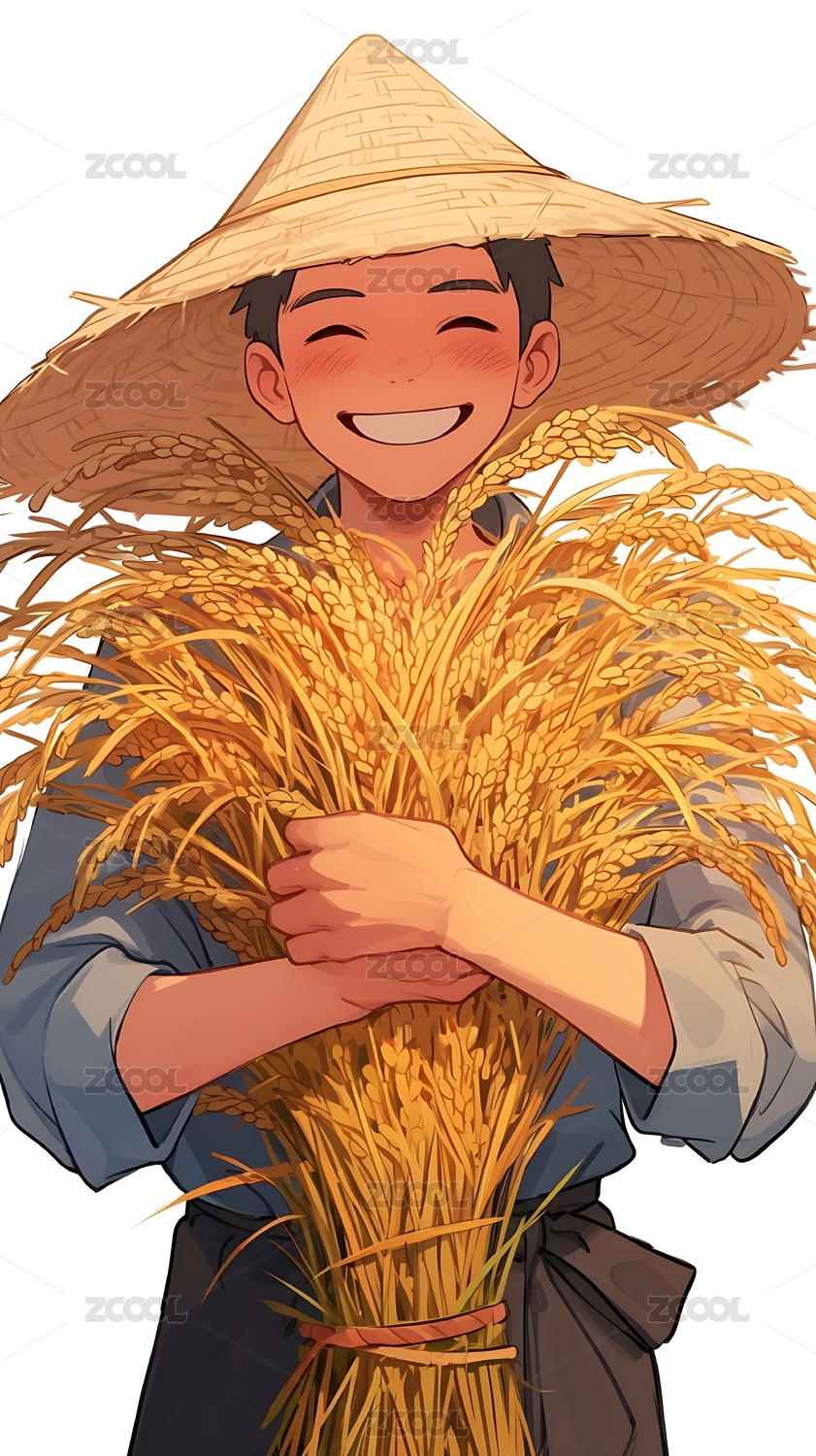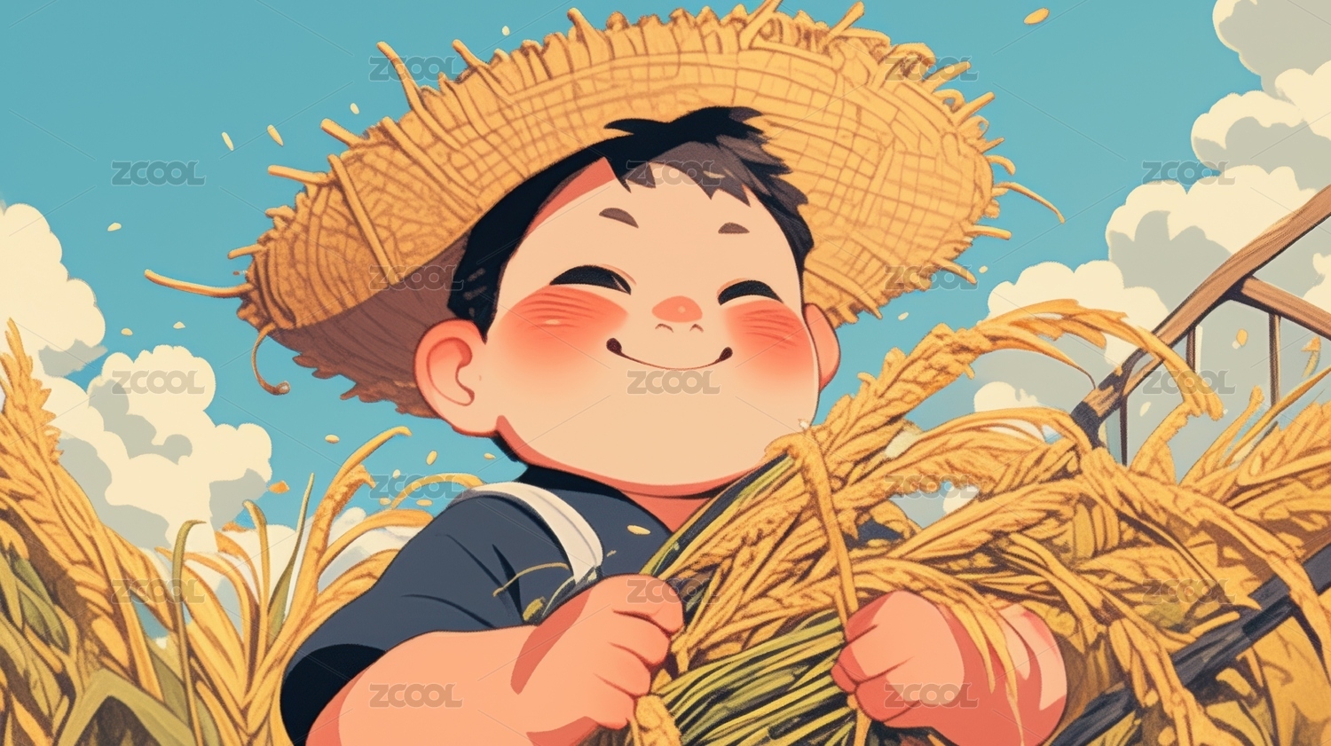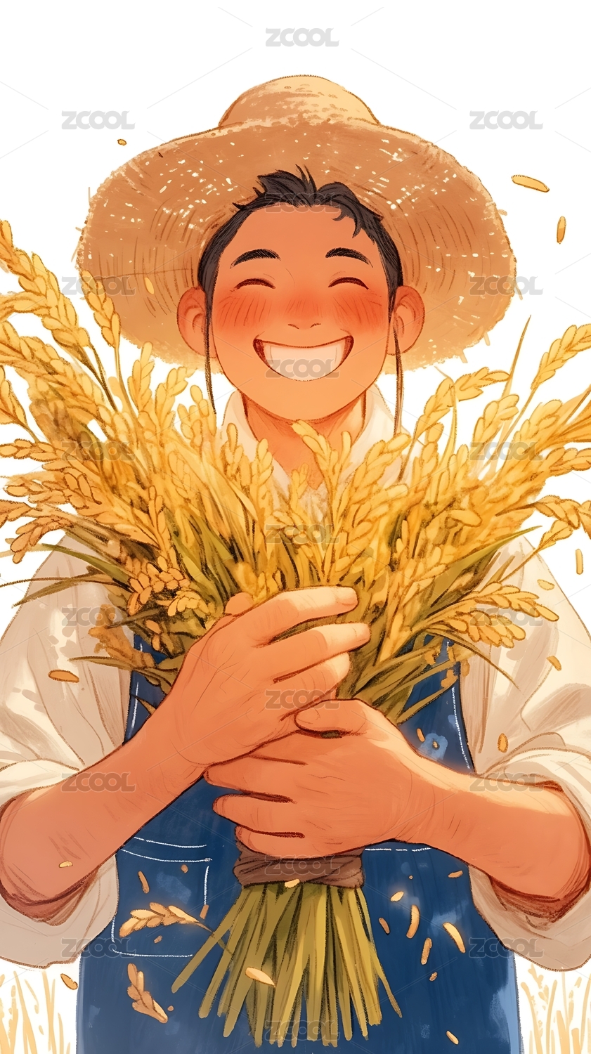 农民,草帽,稻穗,插画,丰收,笑容,劳动,田园,质朴,夏季