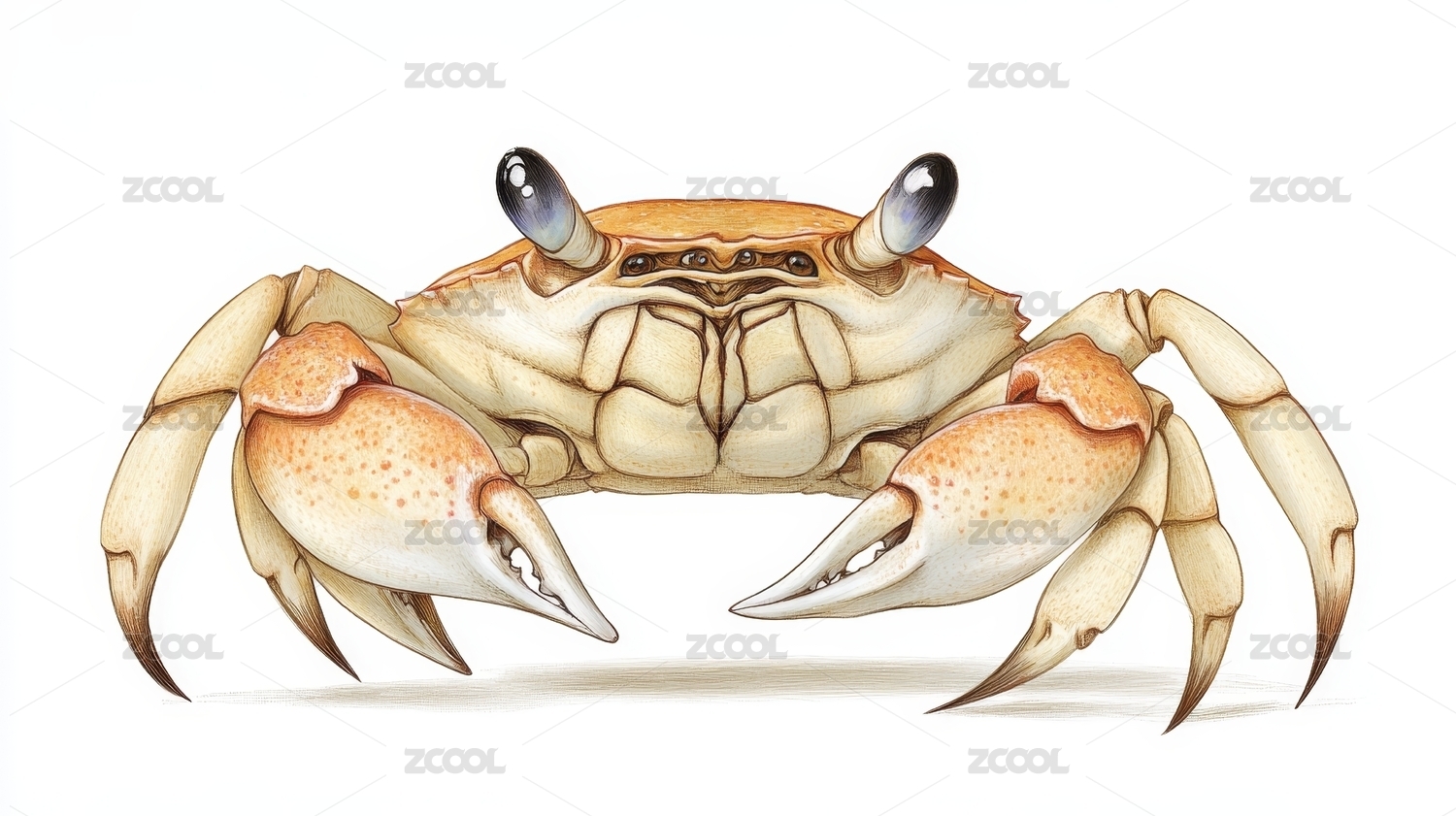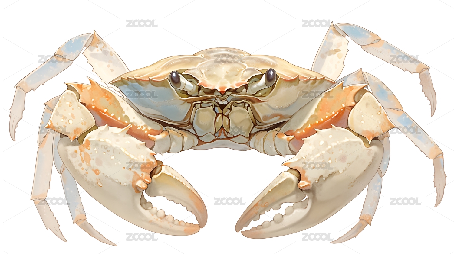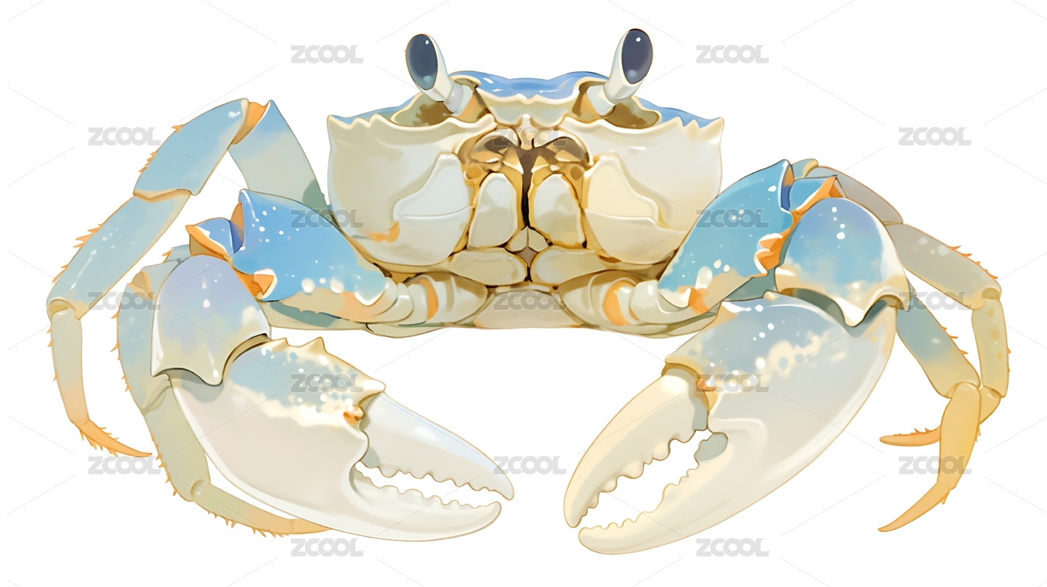 螃蟹,插画,浅蓝,白色,写实,海洋生物,甲壳类,科普,生物图鉴,细节