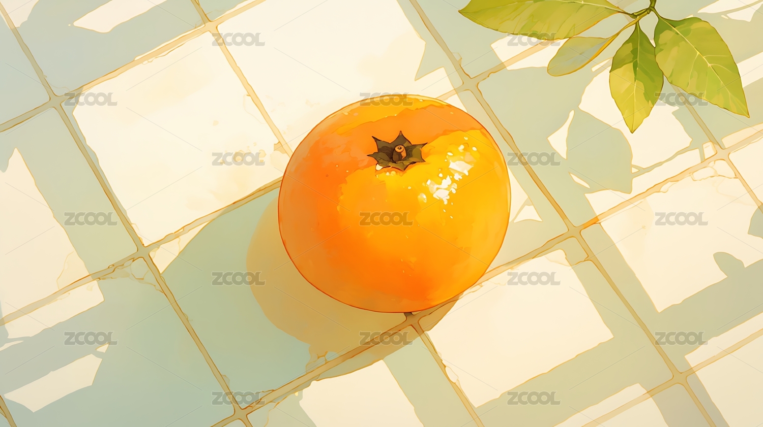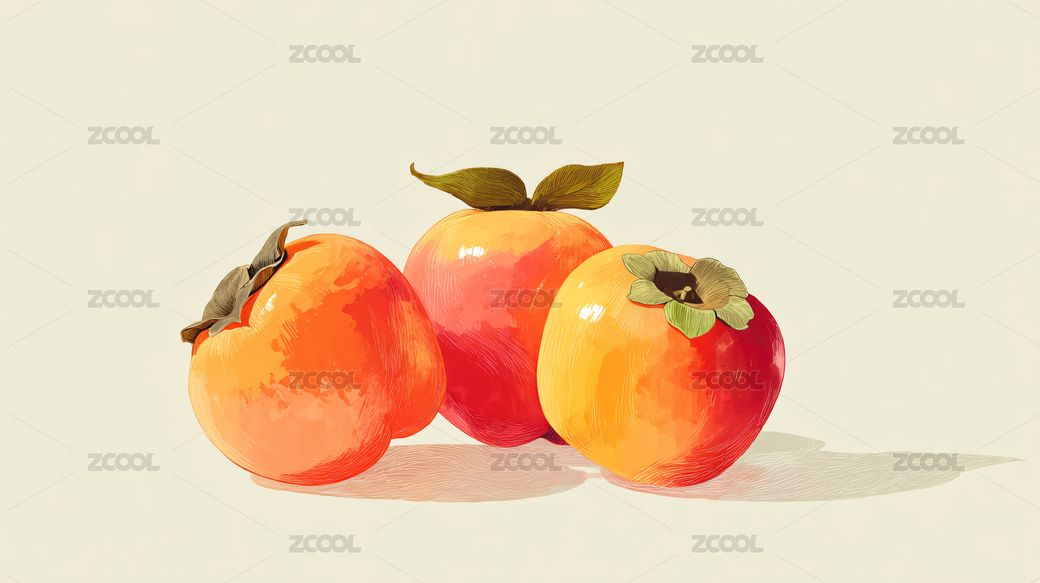 柿子,插画,叠放,橙色,叶子,圆润,简约,可爱,水果,装饰