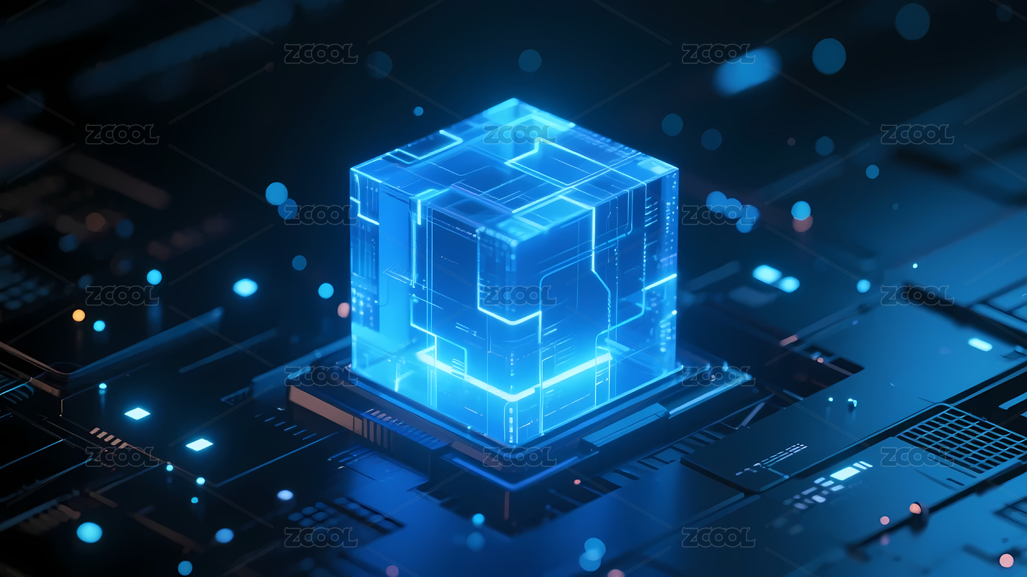蓝色,光点,未来,科技,电路板,背景,模糊,发光,透明,立方体