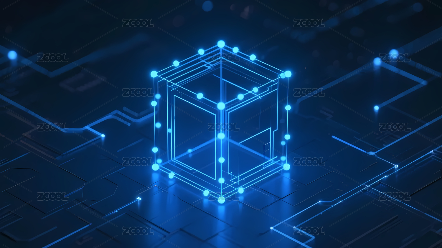 蓝色,光点,未来,科技,电路板,背景,深色,模糊,发光,立方体