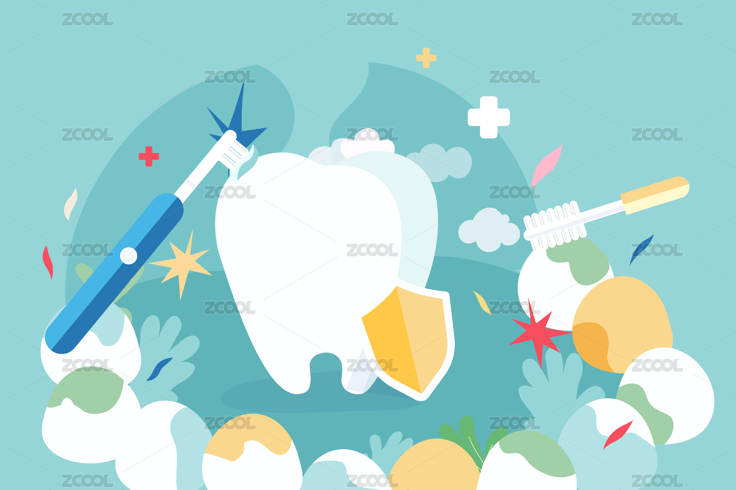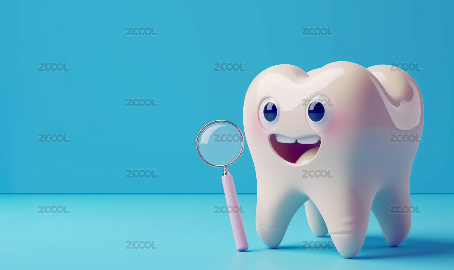牙齿,放大镜,口腔,健康,护理,清洁,蓝色,背景,光泽,插画