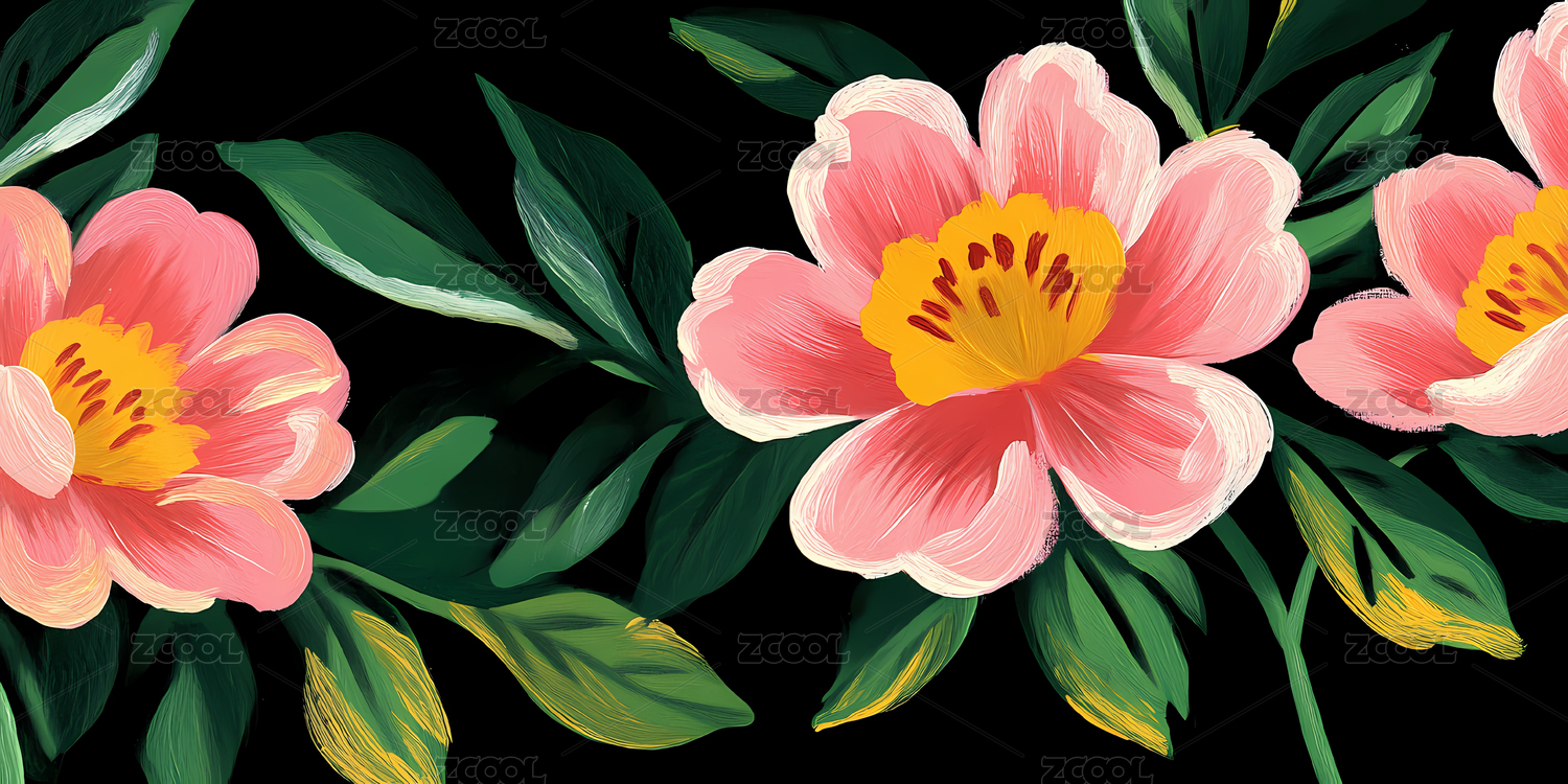 粉色花朵与绿色叶子的对比艺术