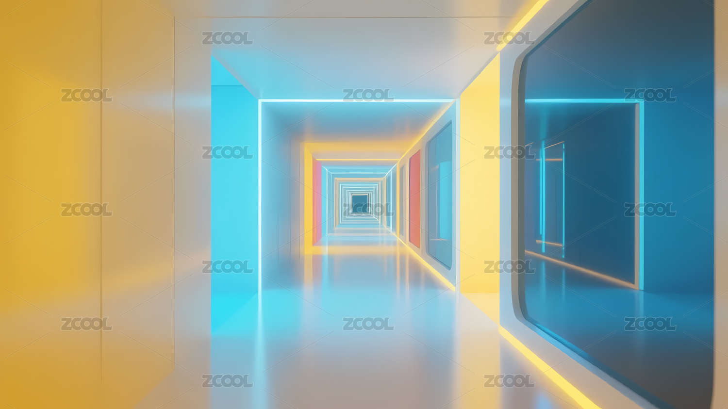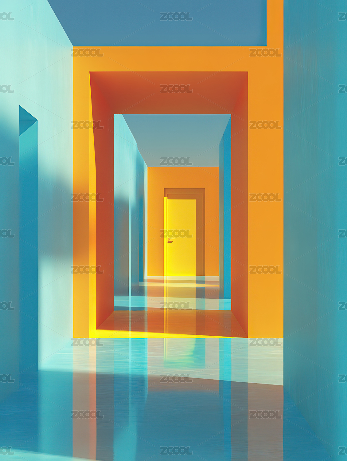 彩色几何走廊透视图