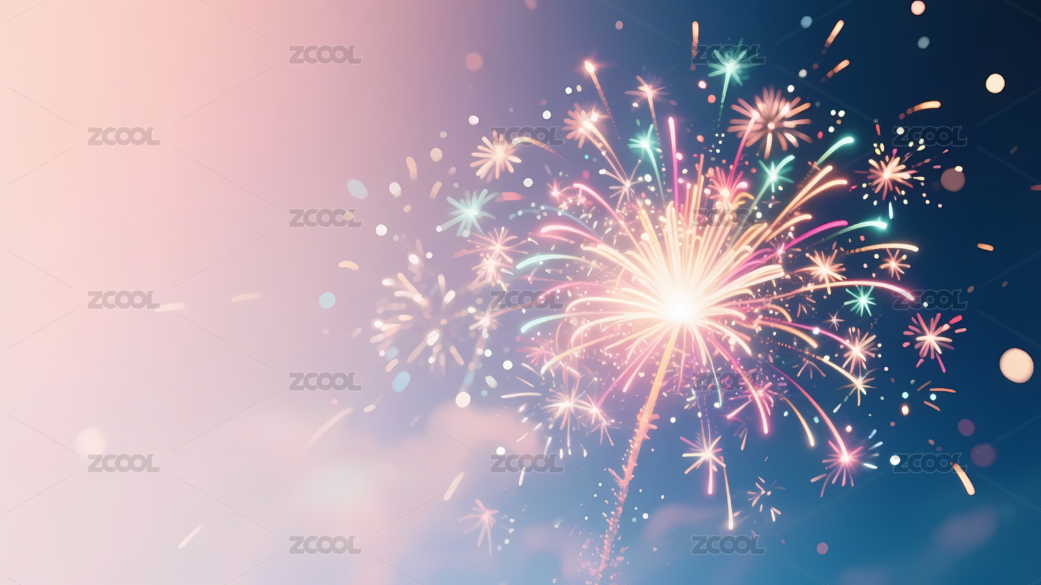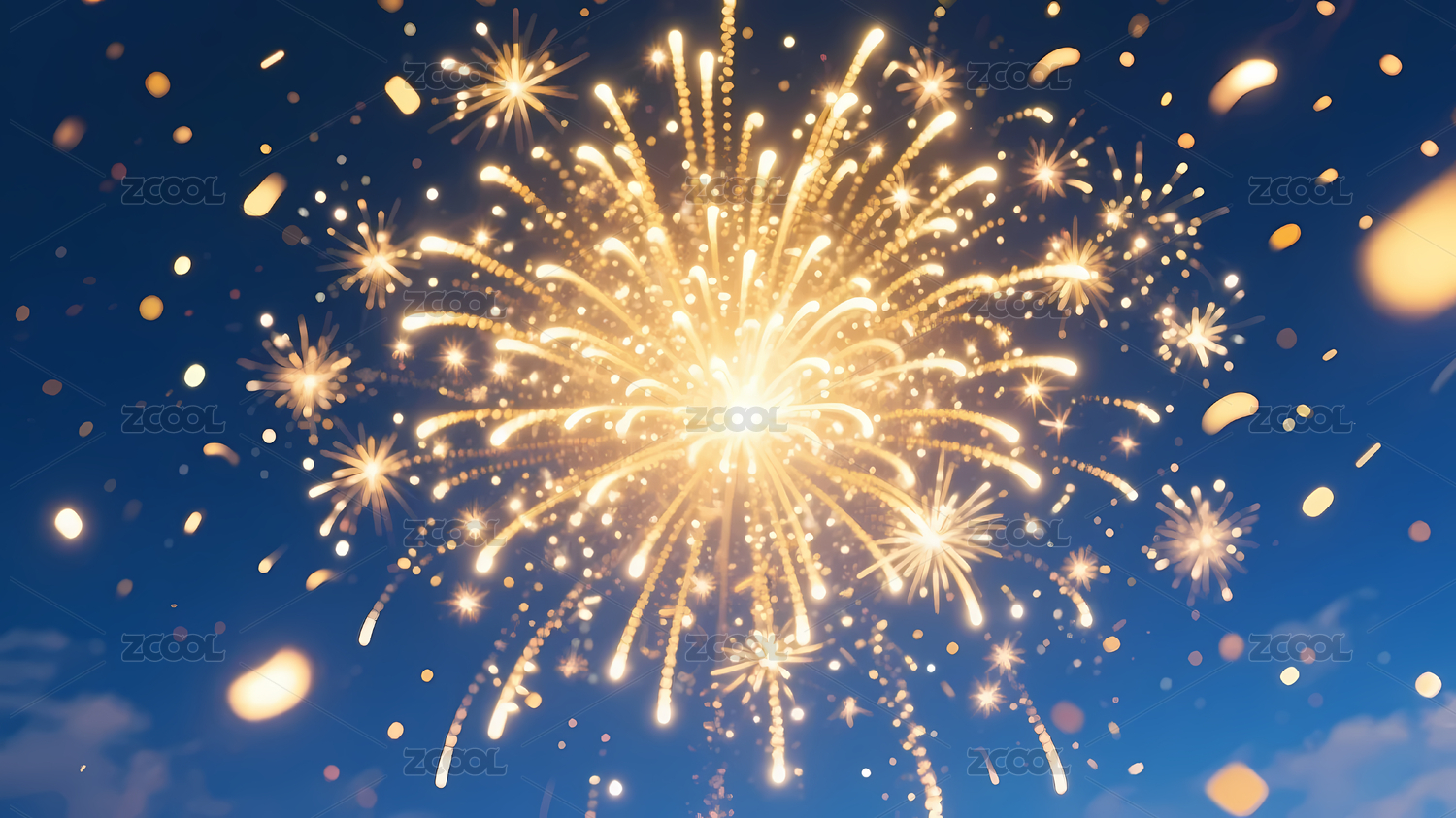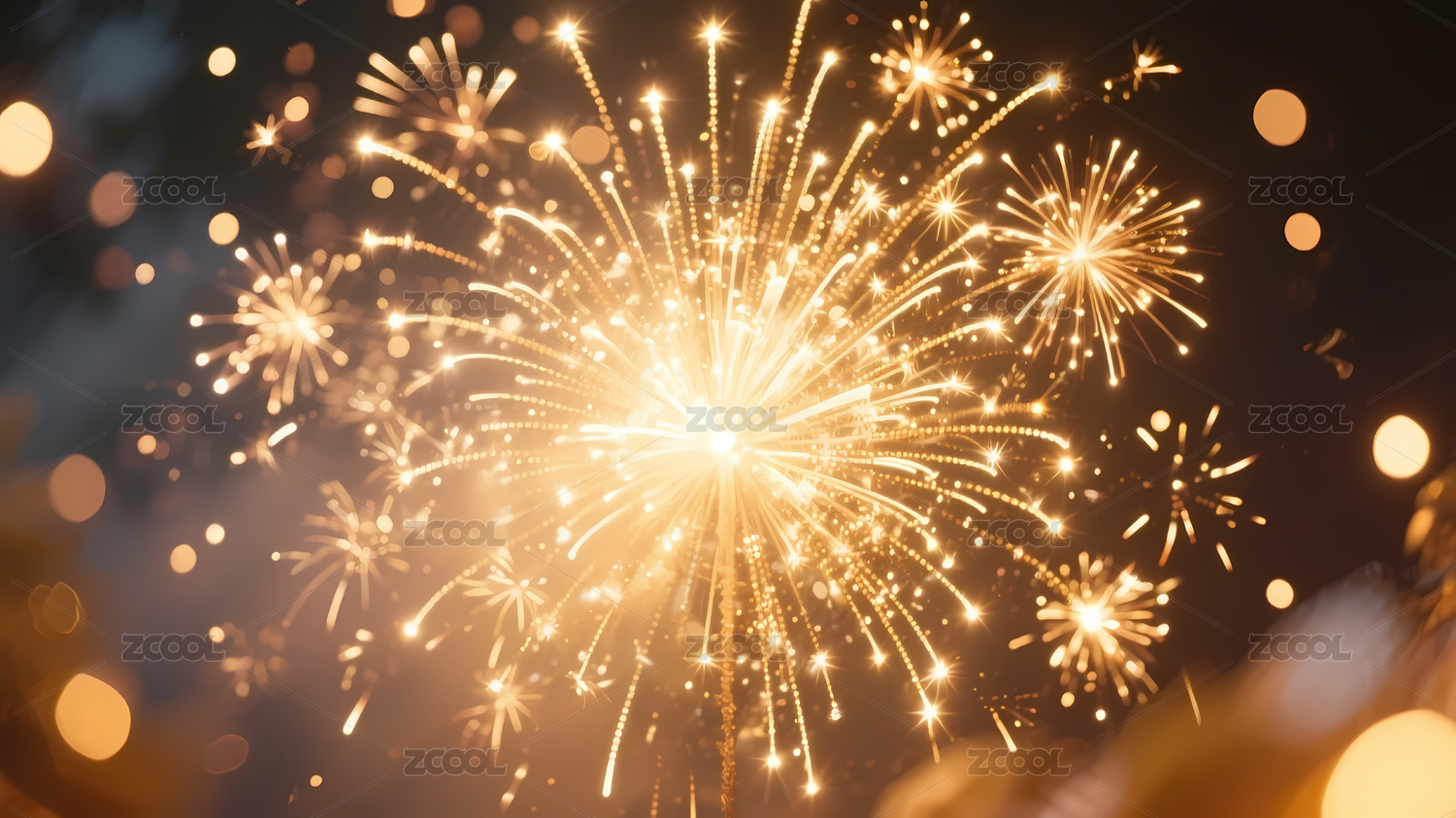 黄色,背景,金色,模糊,光点,深蓝,烟花,夜空,绽放,节日