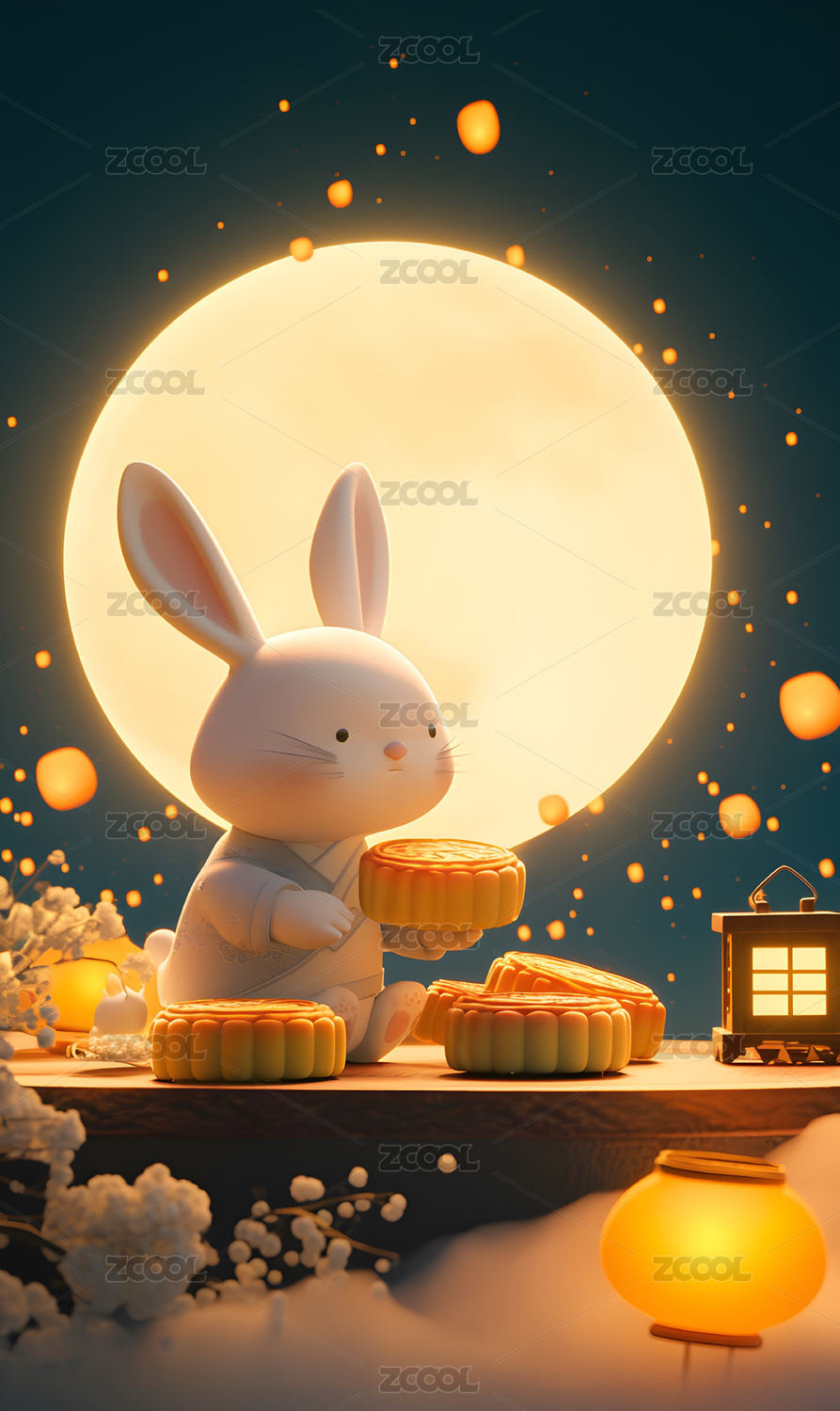 背景,壁纸,卡通,节日,可爱,中秋,兔子,玉兔,黄色,唯美