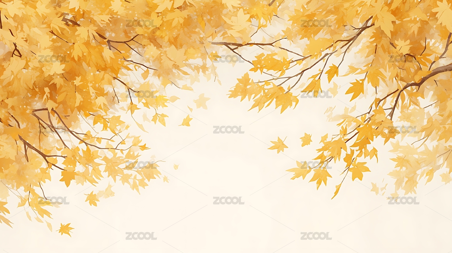 秋叶,枝头,飘落,秋天,插画,自然,清新,季节,诗意,灵动