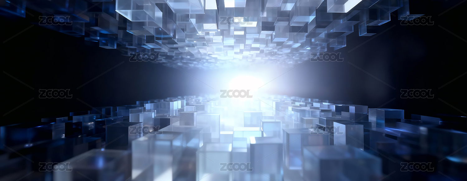 数码蓝色抽象玻璃雕塑抽海报网页背景