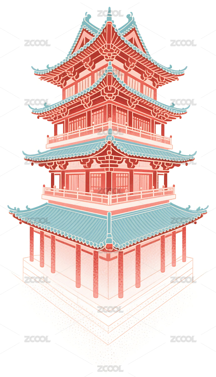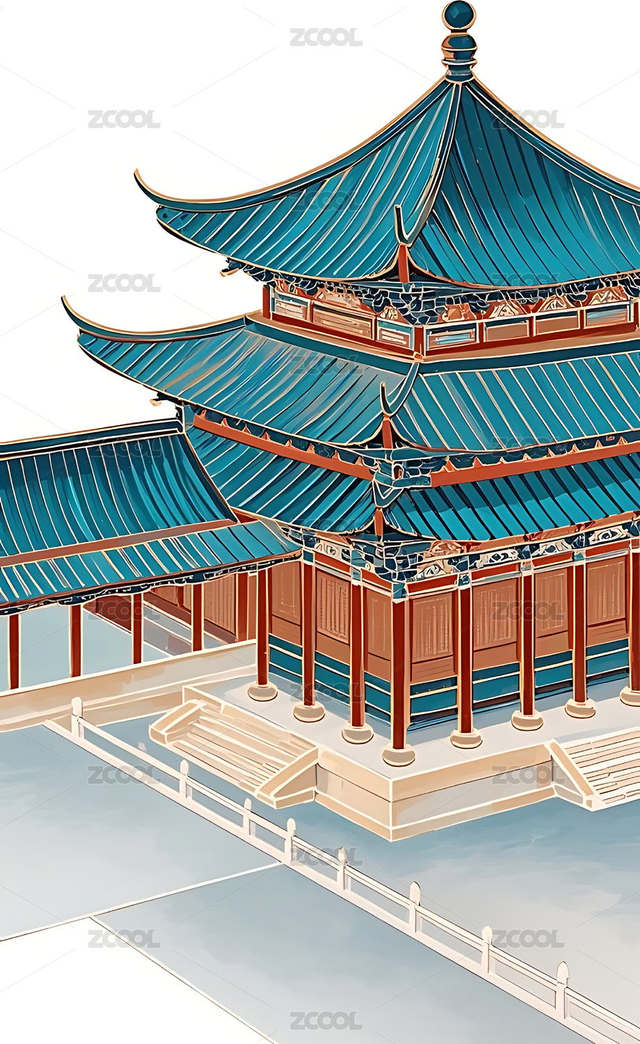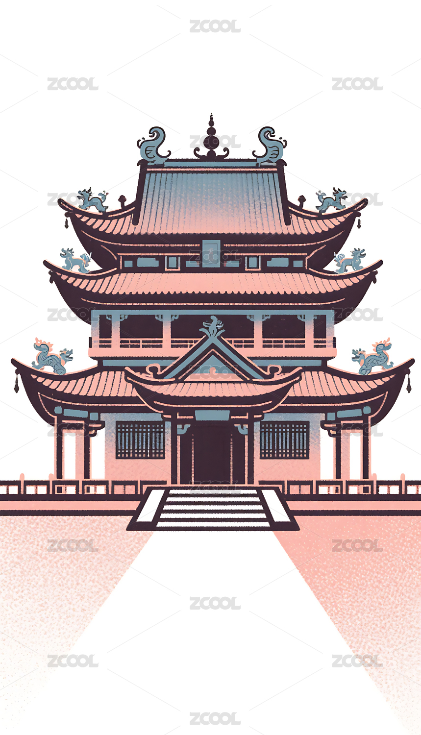 国潮风,古风,国风,古建筑,中式,建筑,插画,背景,壁纸,素材