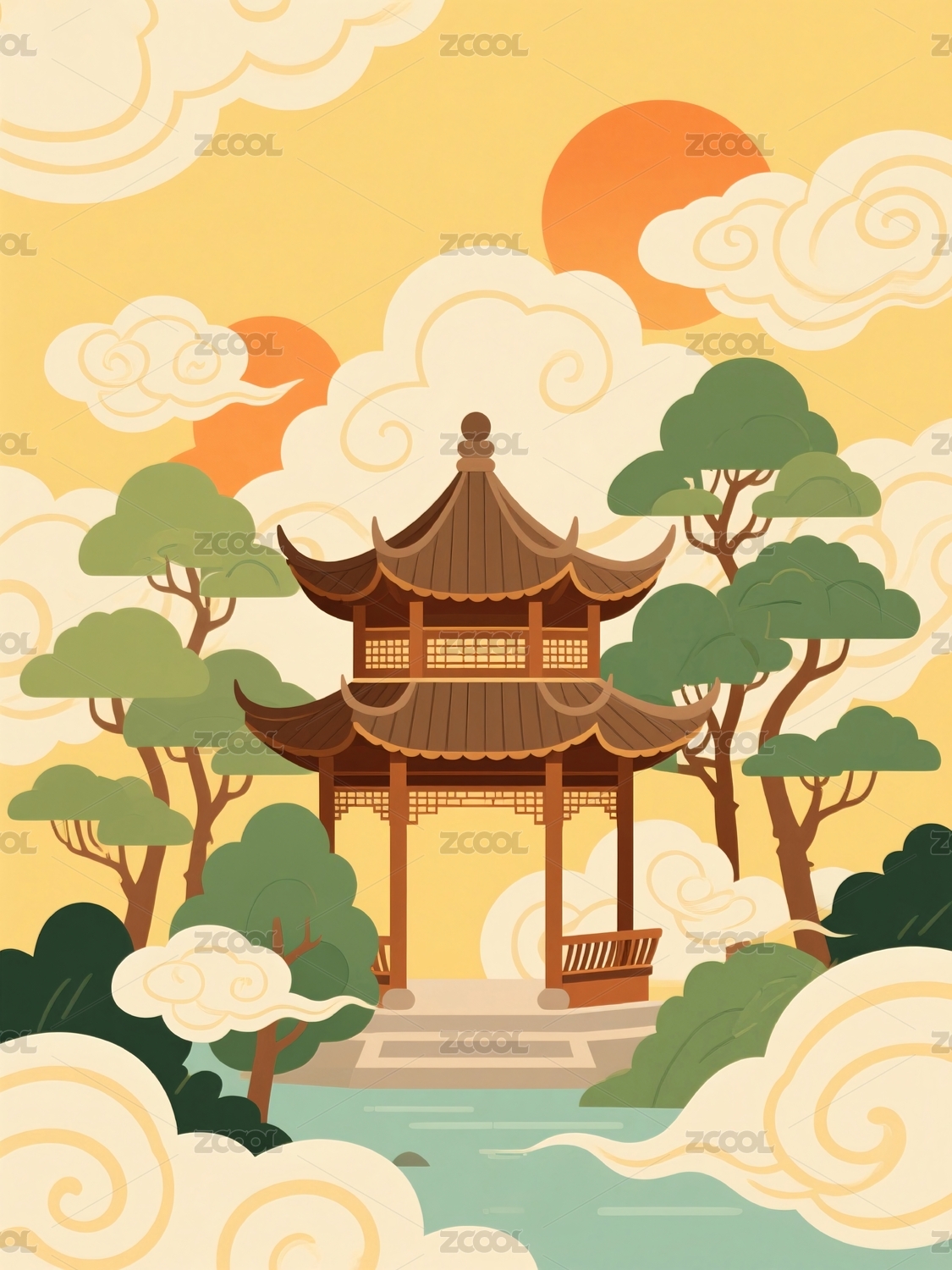 古建筑山水插画