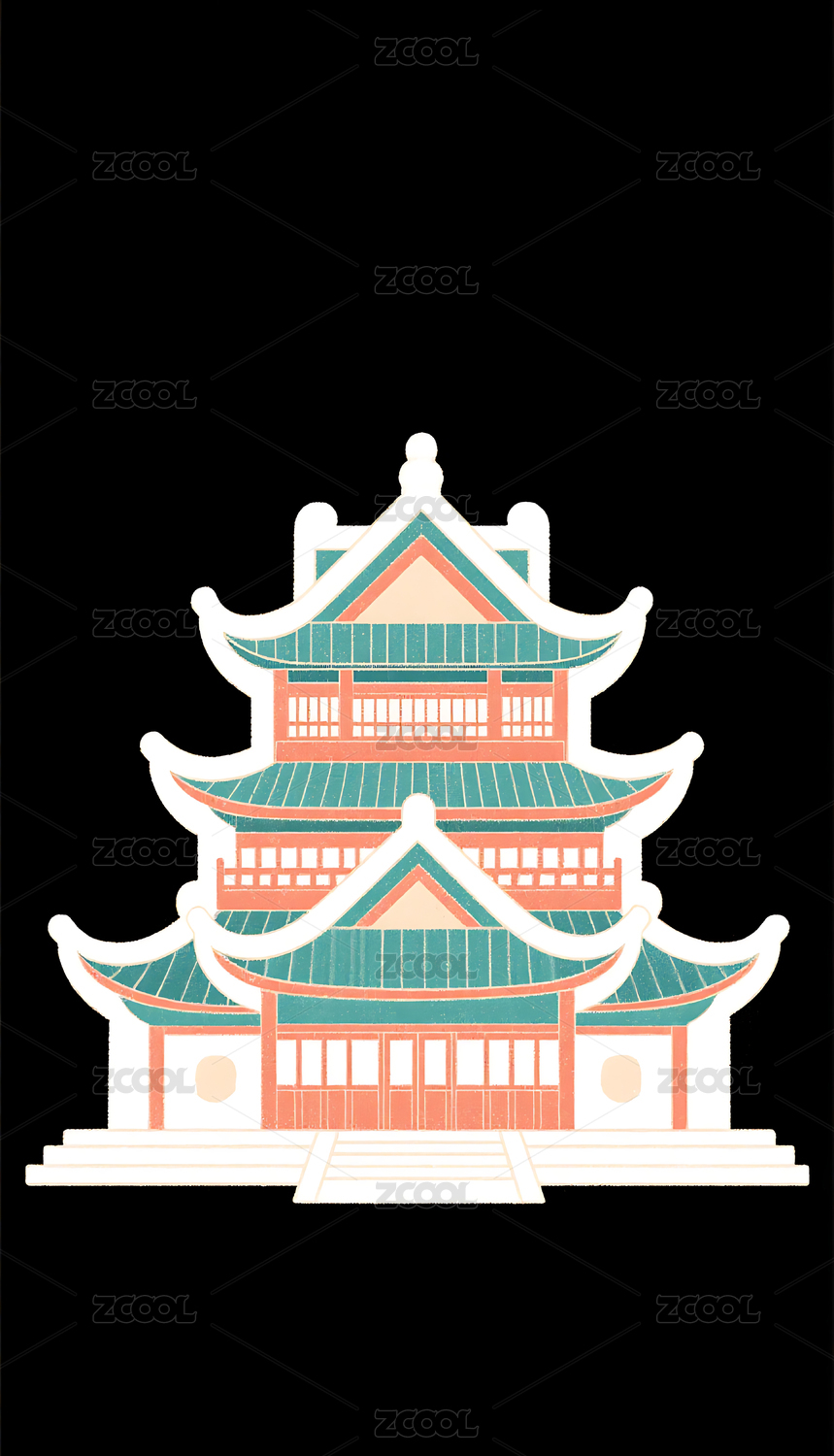 国潮风格古建筑插画素材