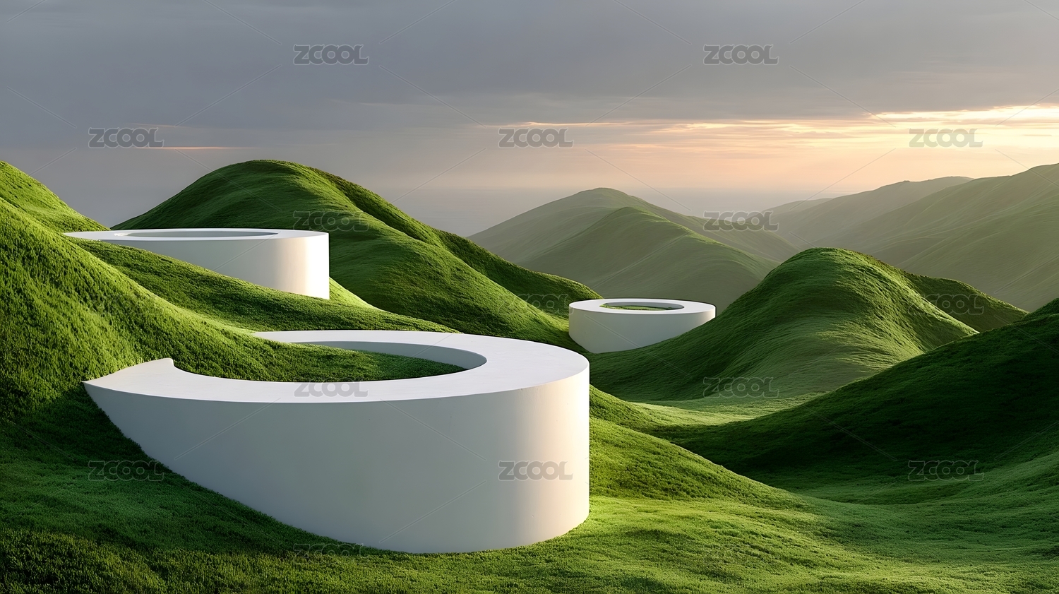 草地圆环山丘景观