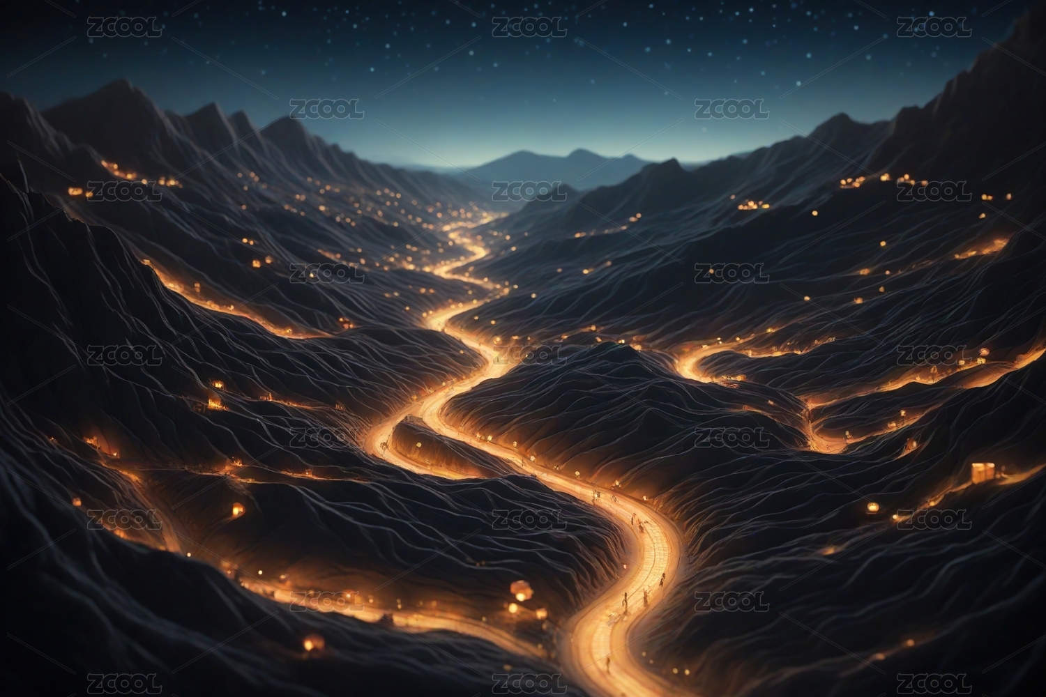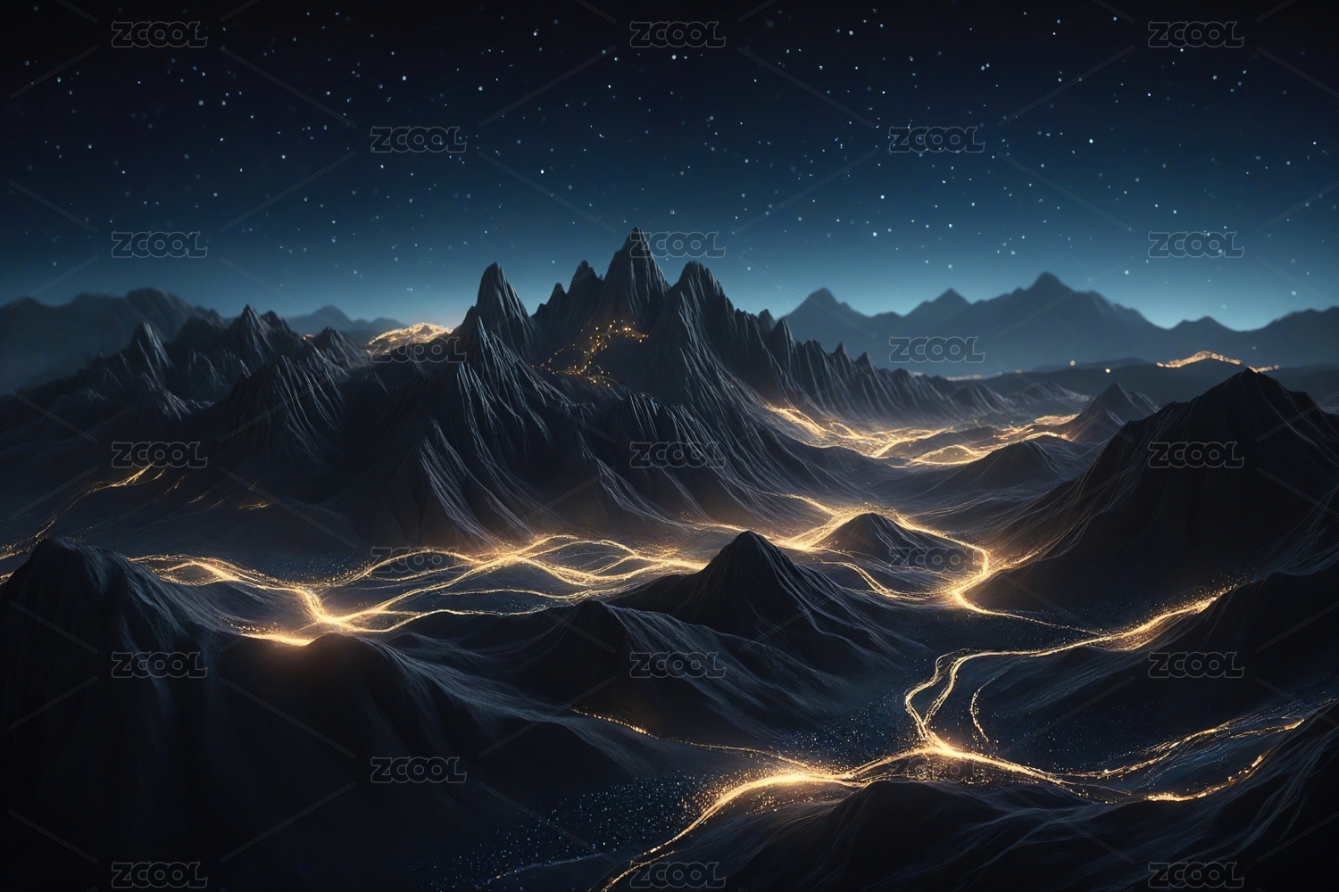 金色,河流,背景,山谷,高山,夜空,弯曲,蜿蜒,光轨,粒子