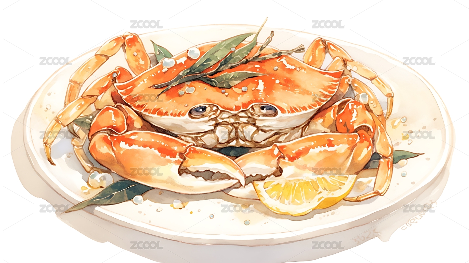 螃蟹,海鲜,插画,手绘,美食,海洋,美味,艺术,装饰,写实