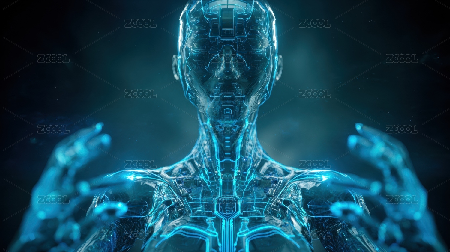 科幻,透明,人体,形象,线条,蓝光,科技感,轮廓,颈部,头部