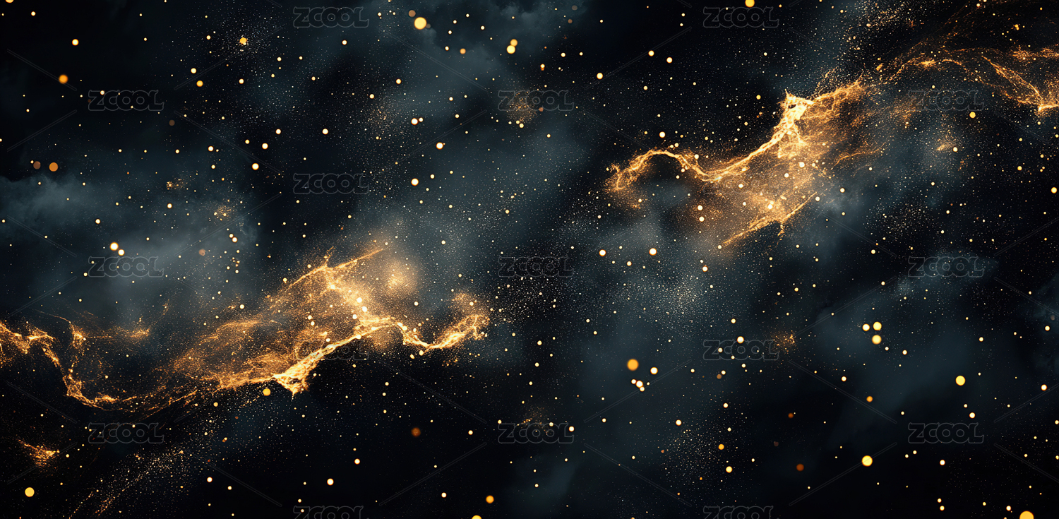 金色粒子如波浪舞动营造梦幻年会视觉背景