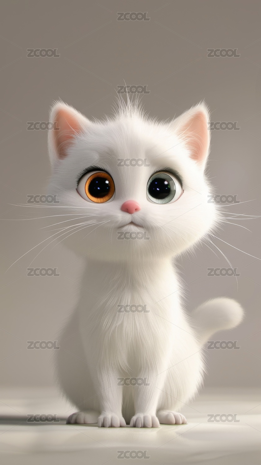 超萌小白猫3D渲染图