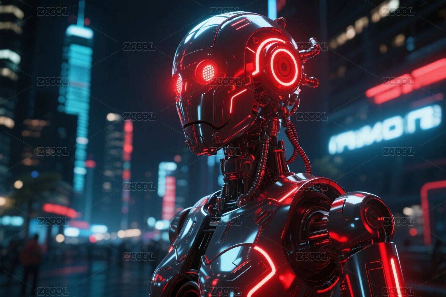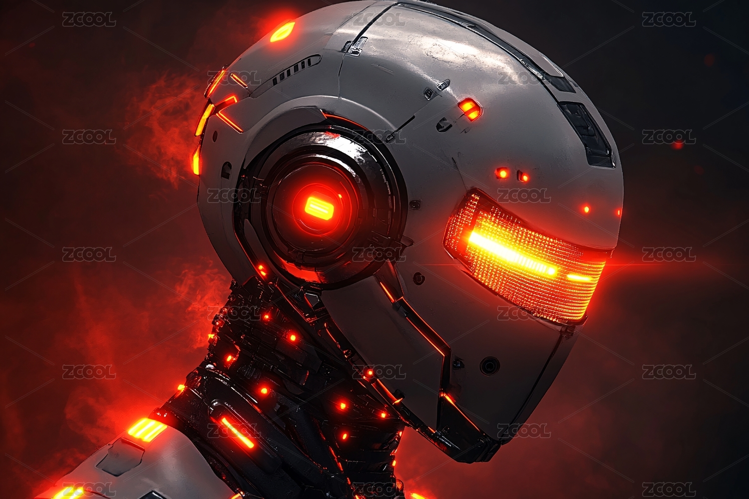 机器人,头部,霓虹光效,科幻,未来感,插画,矢量,金属质感,科技,炫酷