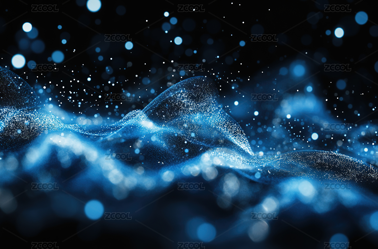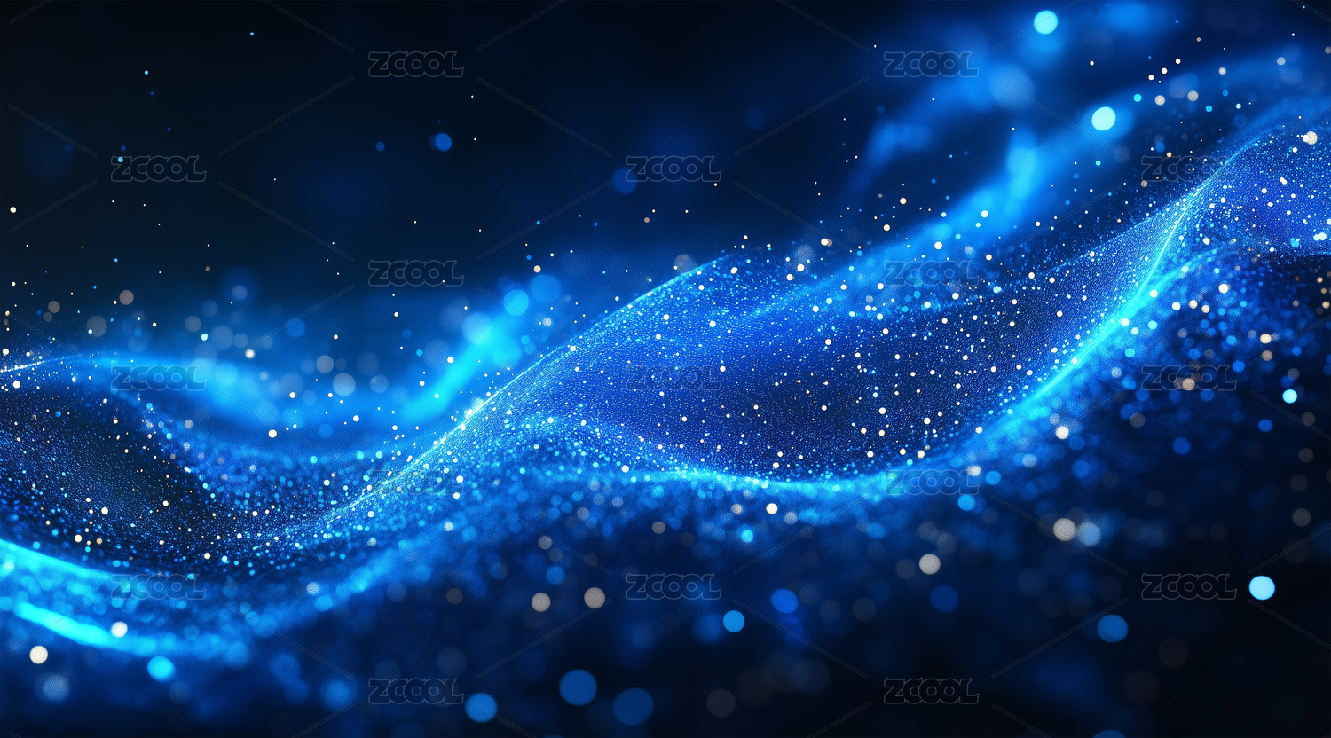 星空,波浪,光效,粒子,蓝色,背景,插画,矢量