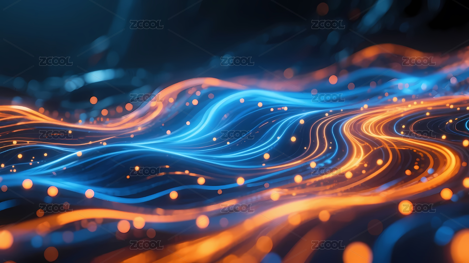 背景,蓝色,未来,科技,橙色,深色,光点,光带,动态,蜿蜒