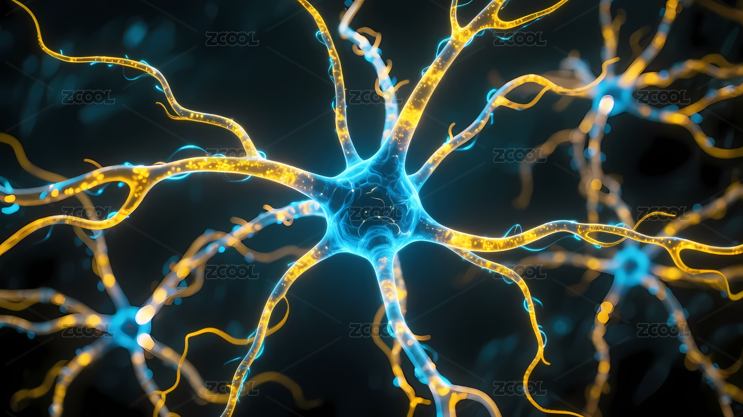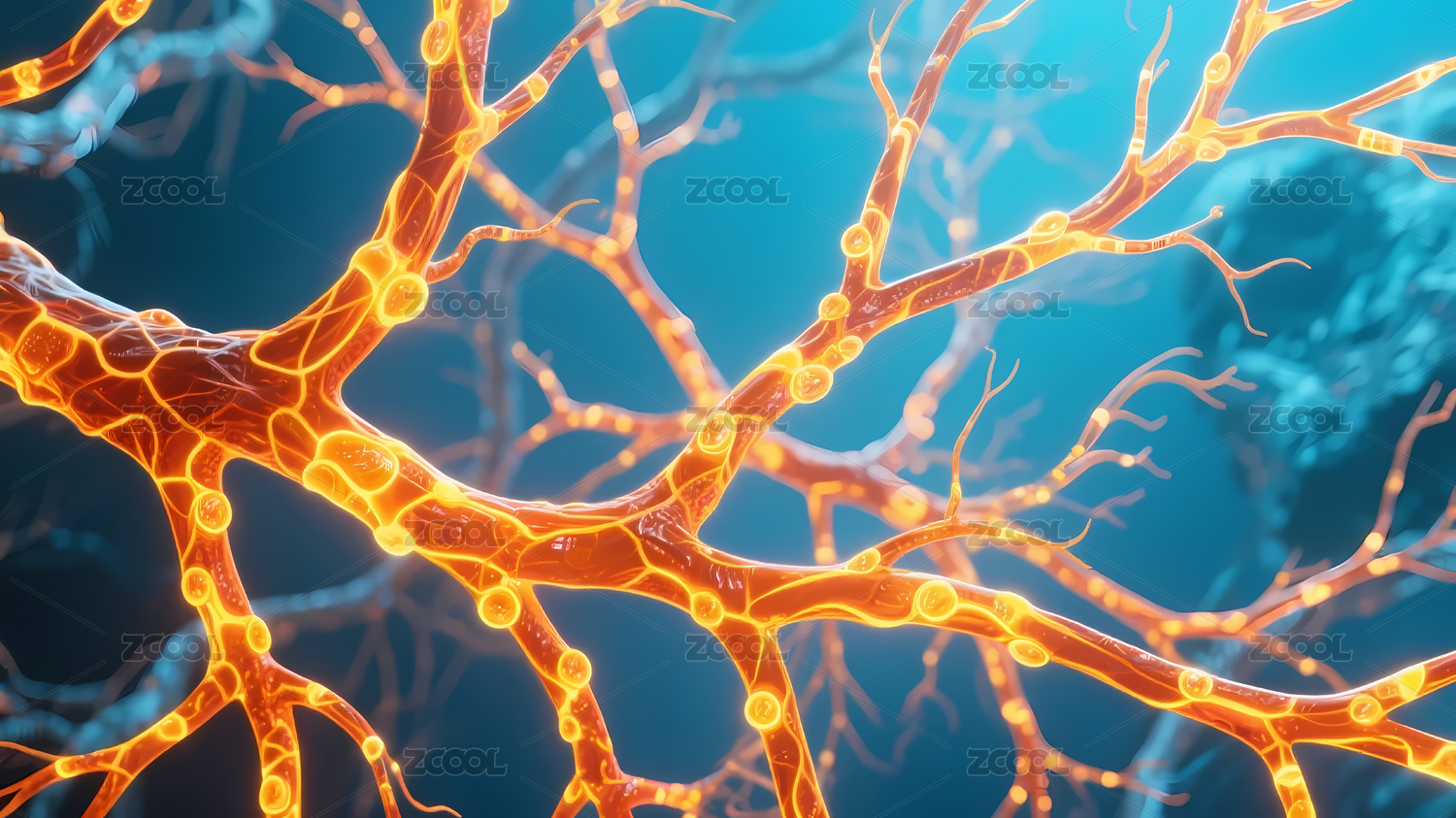 背景,结构,深蓝,黄色,橙色,发光,神经元,动态,生机,细胞