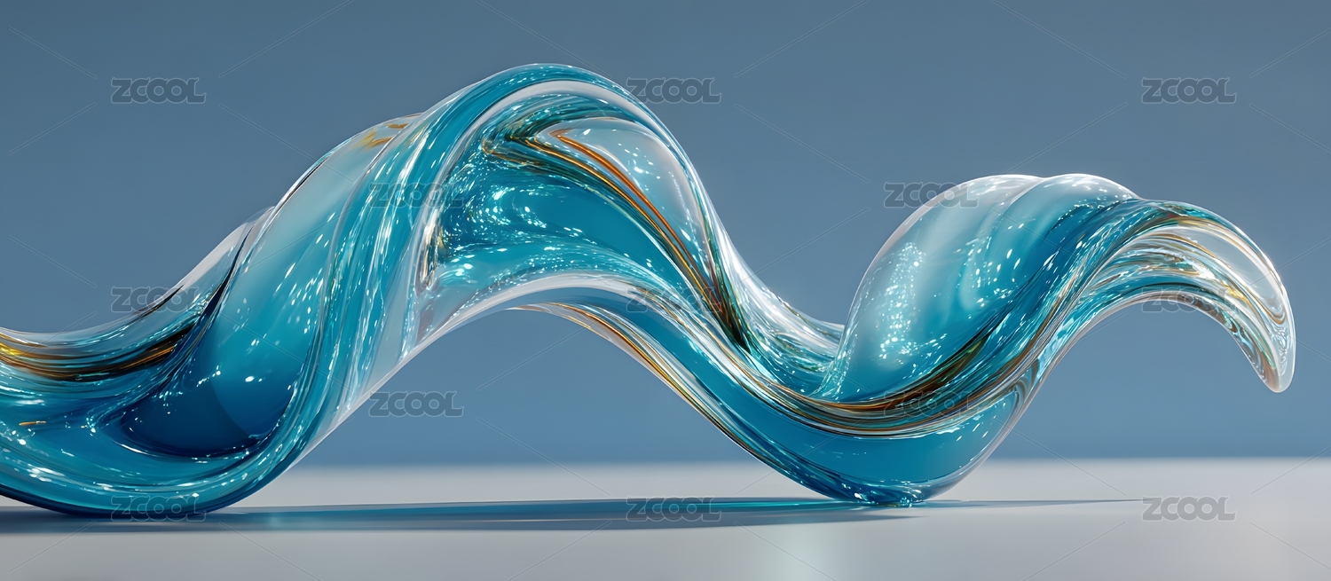 蓝色波浪形玻璃艺术品