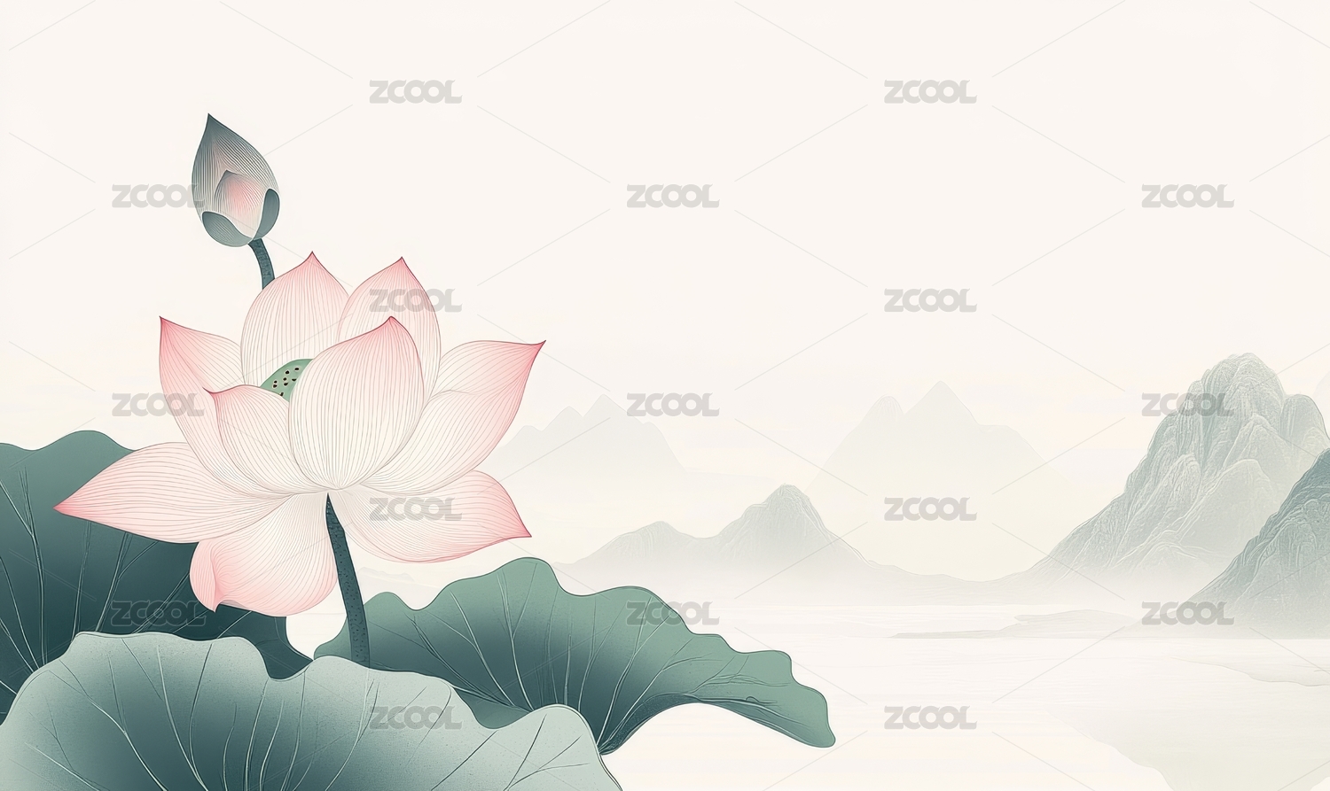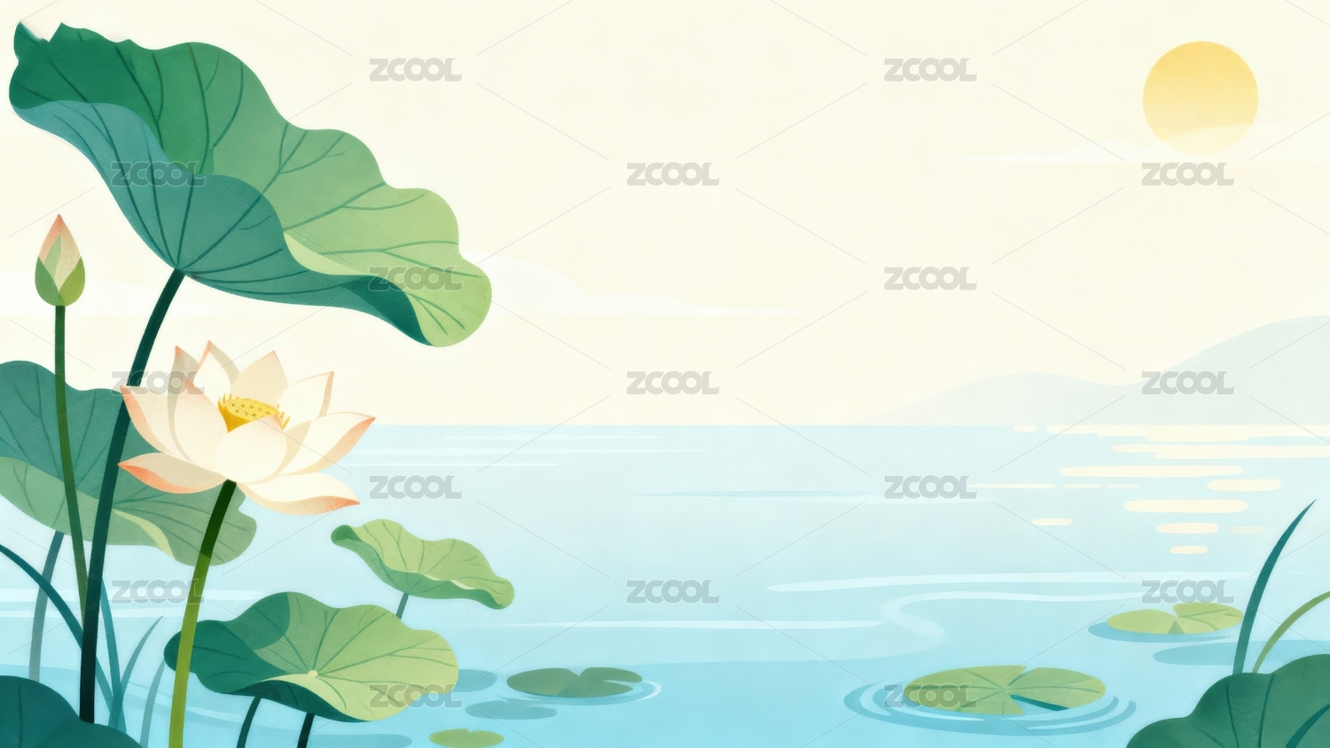大暑节气夏日荷花夏天池塘荷叶花朵国潮插画