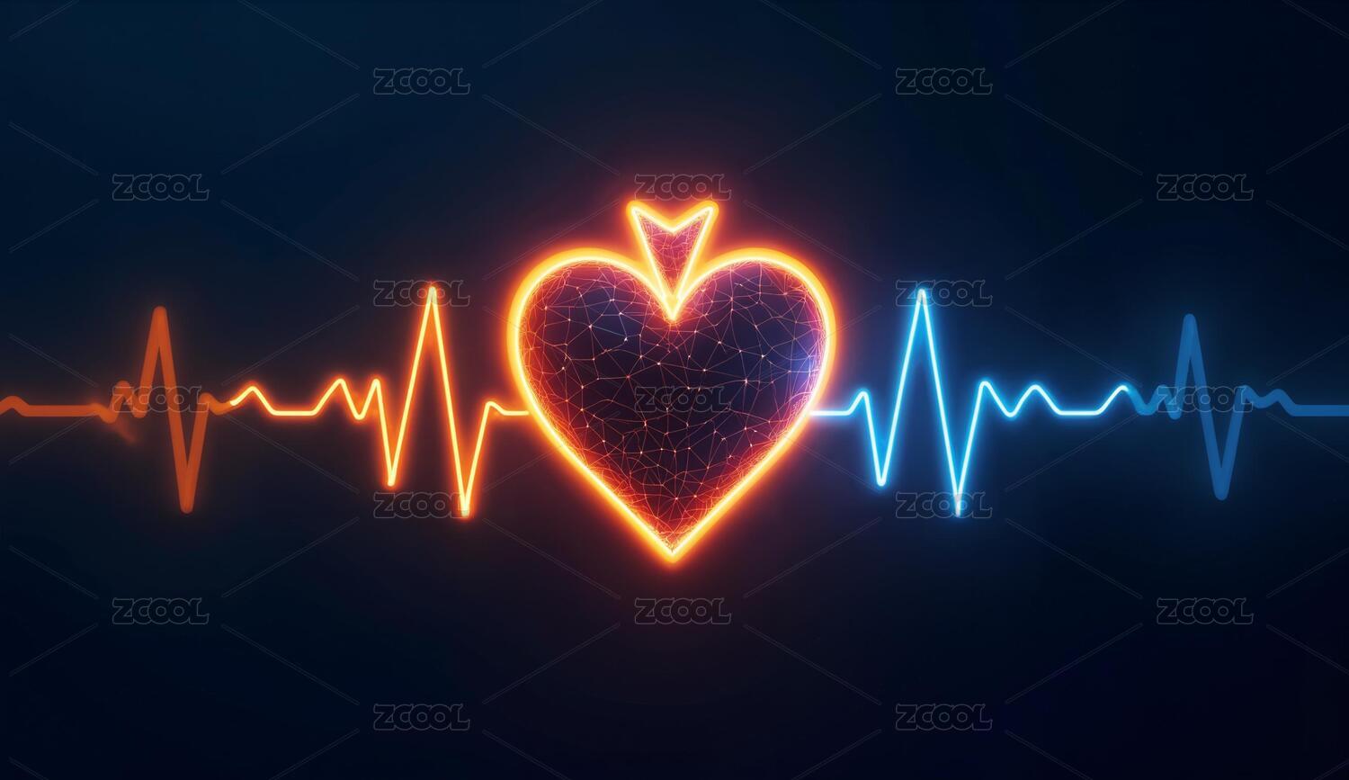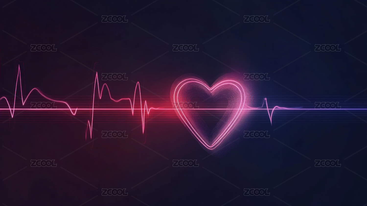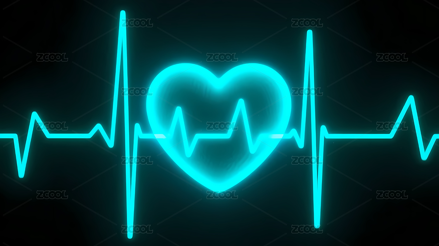 发光,科技,背景,深色,视觉,心形,渐变,心跳线,淡蓝,情感