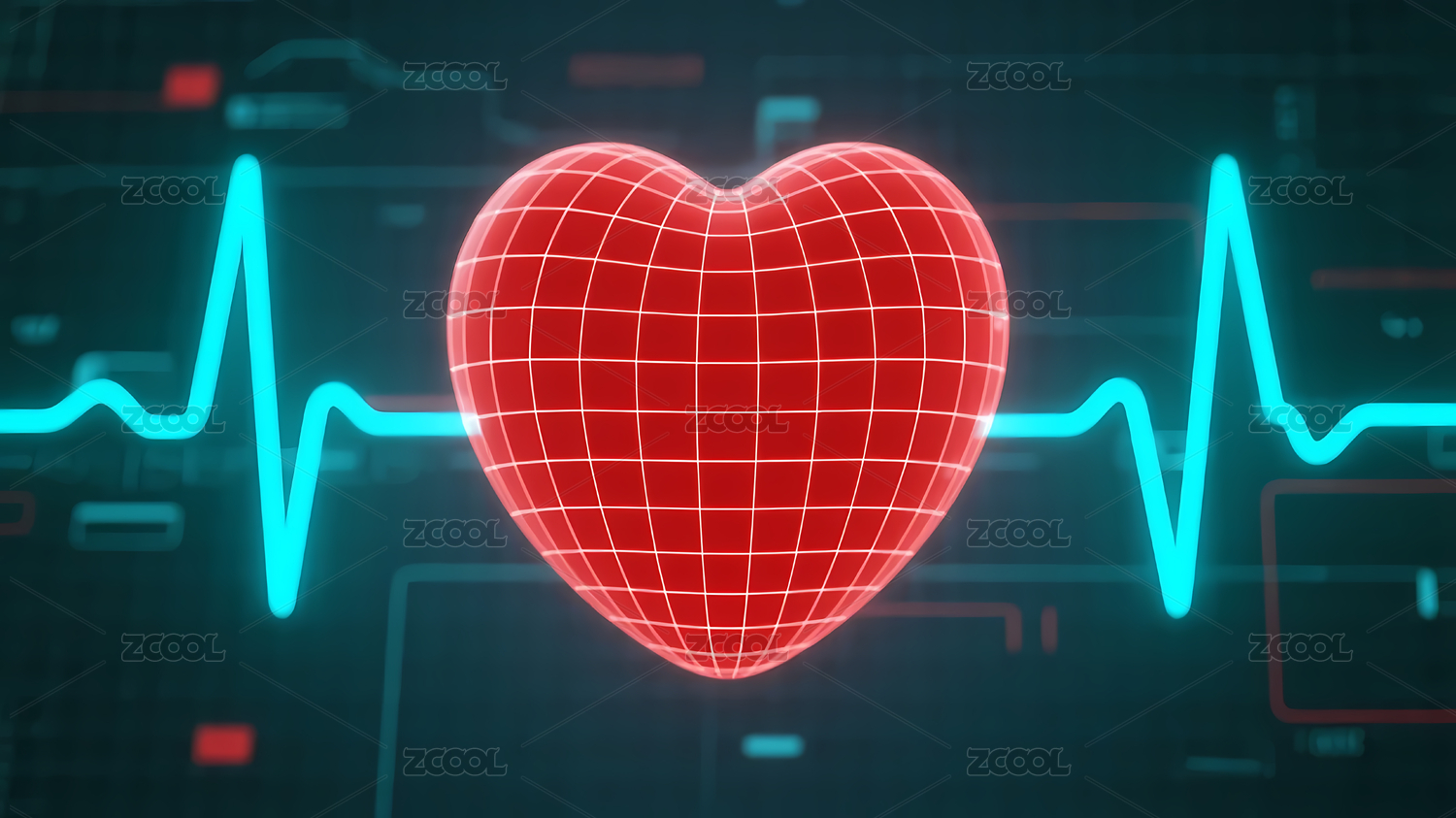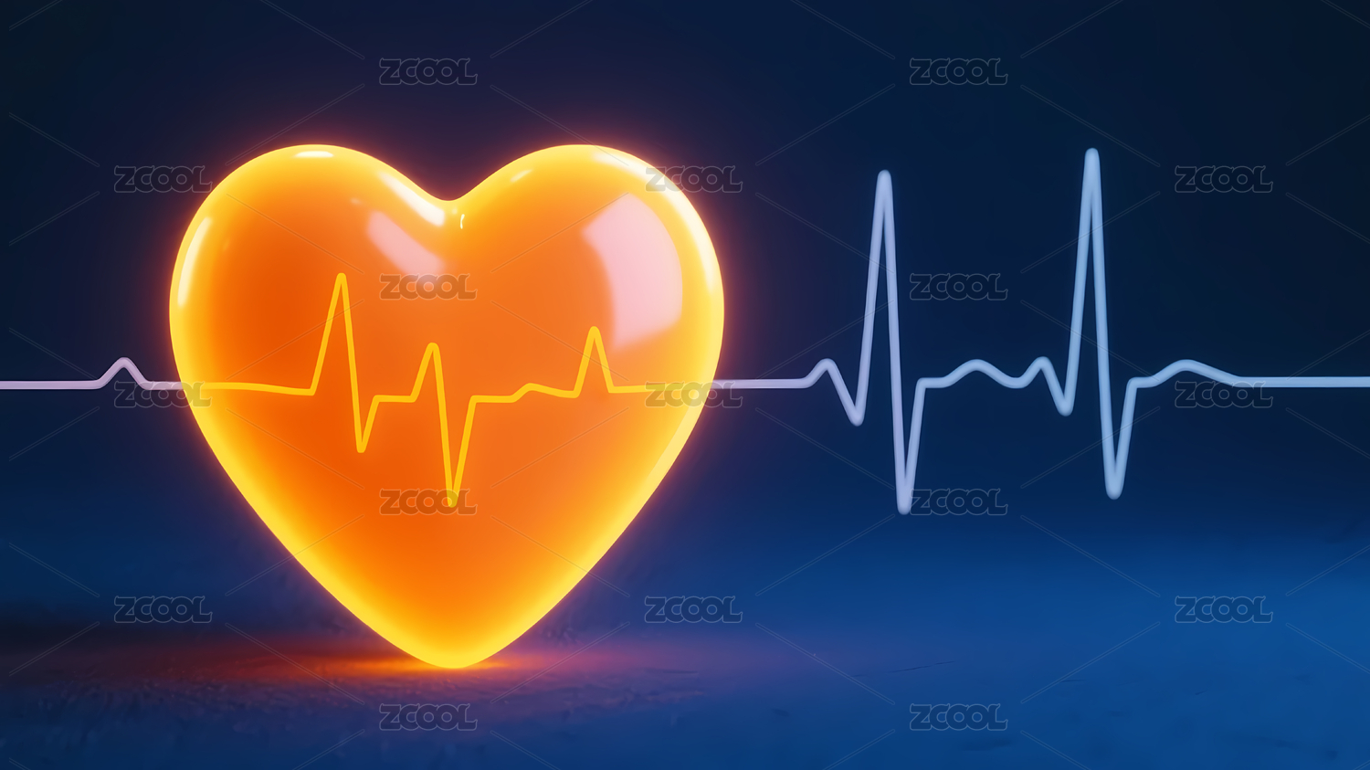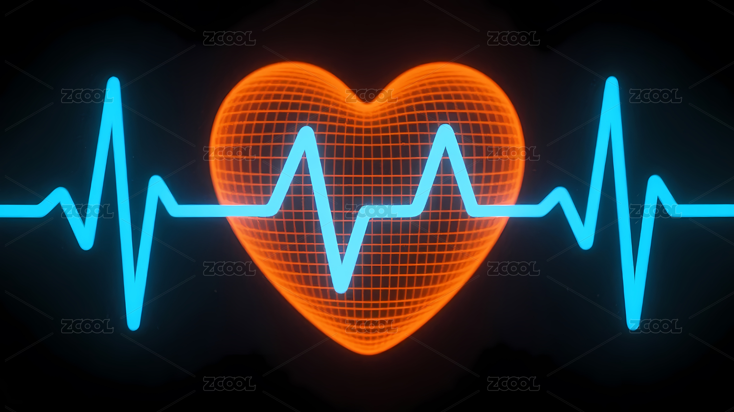发光,科技,背景,深色,视觉,心形,渐变,心跳线,淡蓝,情感
