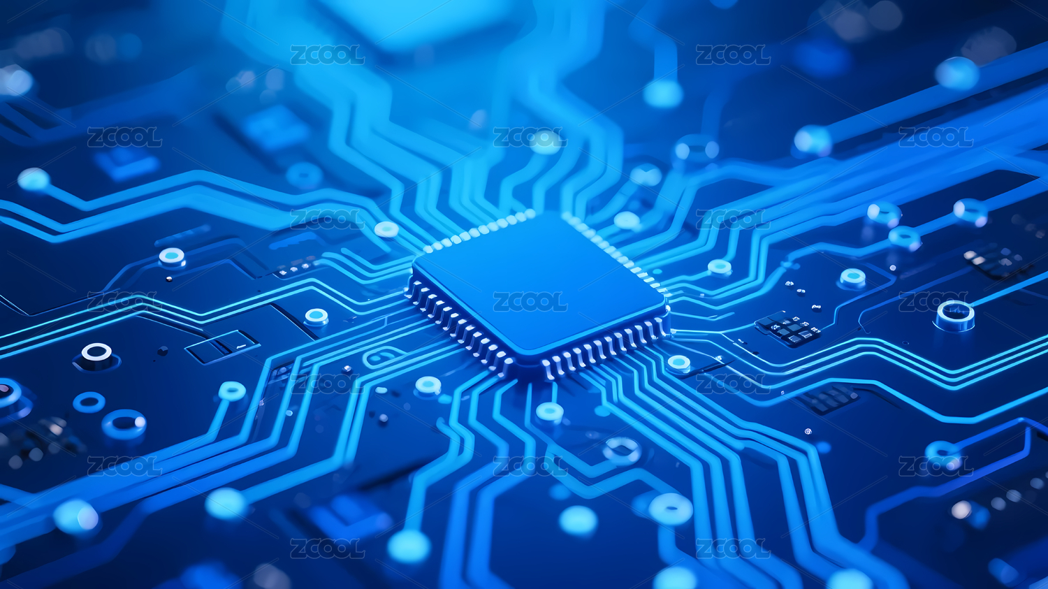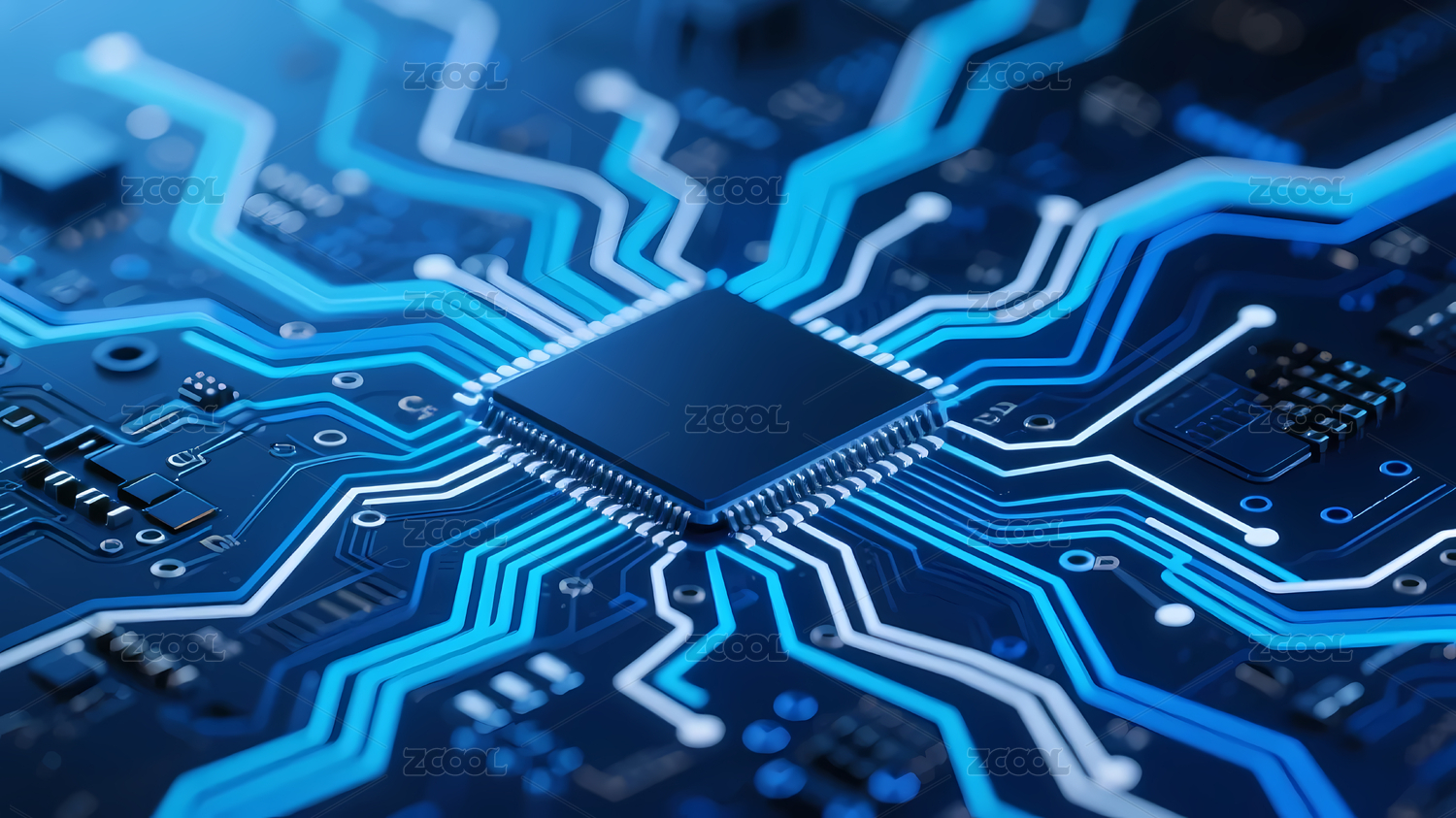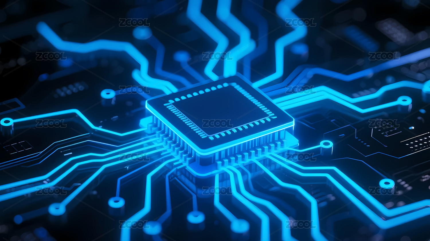 背景,蓝色,科技,深色,中央,芯片,电路板,线路,元件,电子