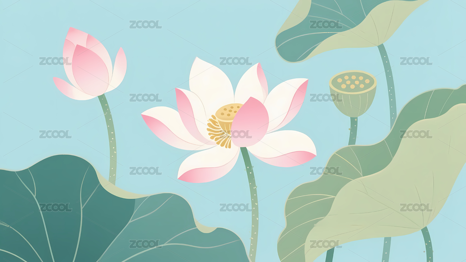 背景,植物,柔和,黄色,粉色,渐变,层叠,浅绿色,莲花,莲蓬