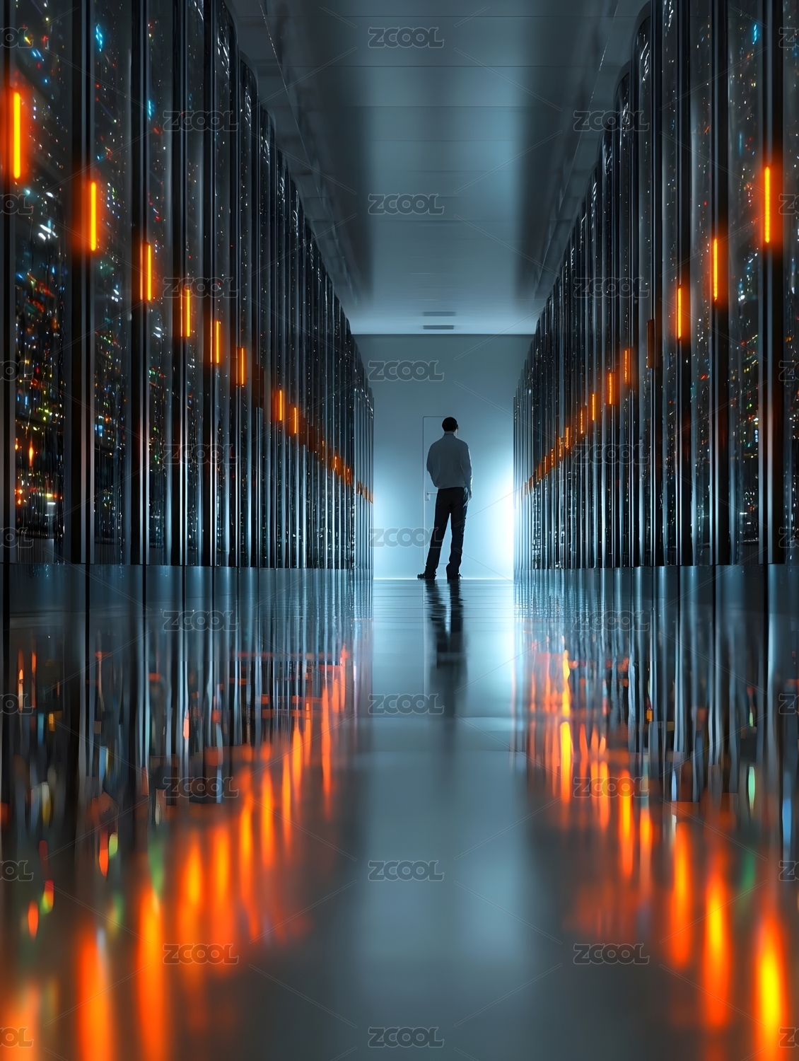 服务器通道中的人影