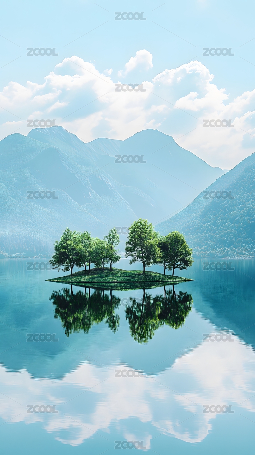 山水间的静谧倒影 雾霭笼罩的湖光山色