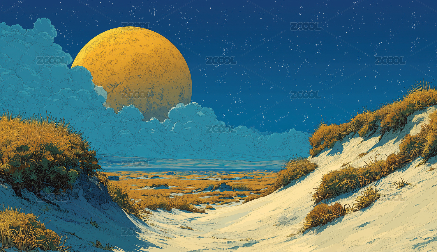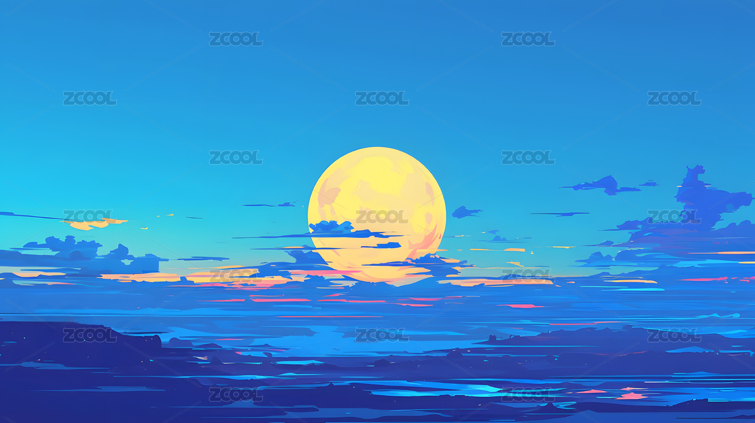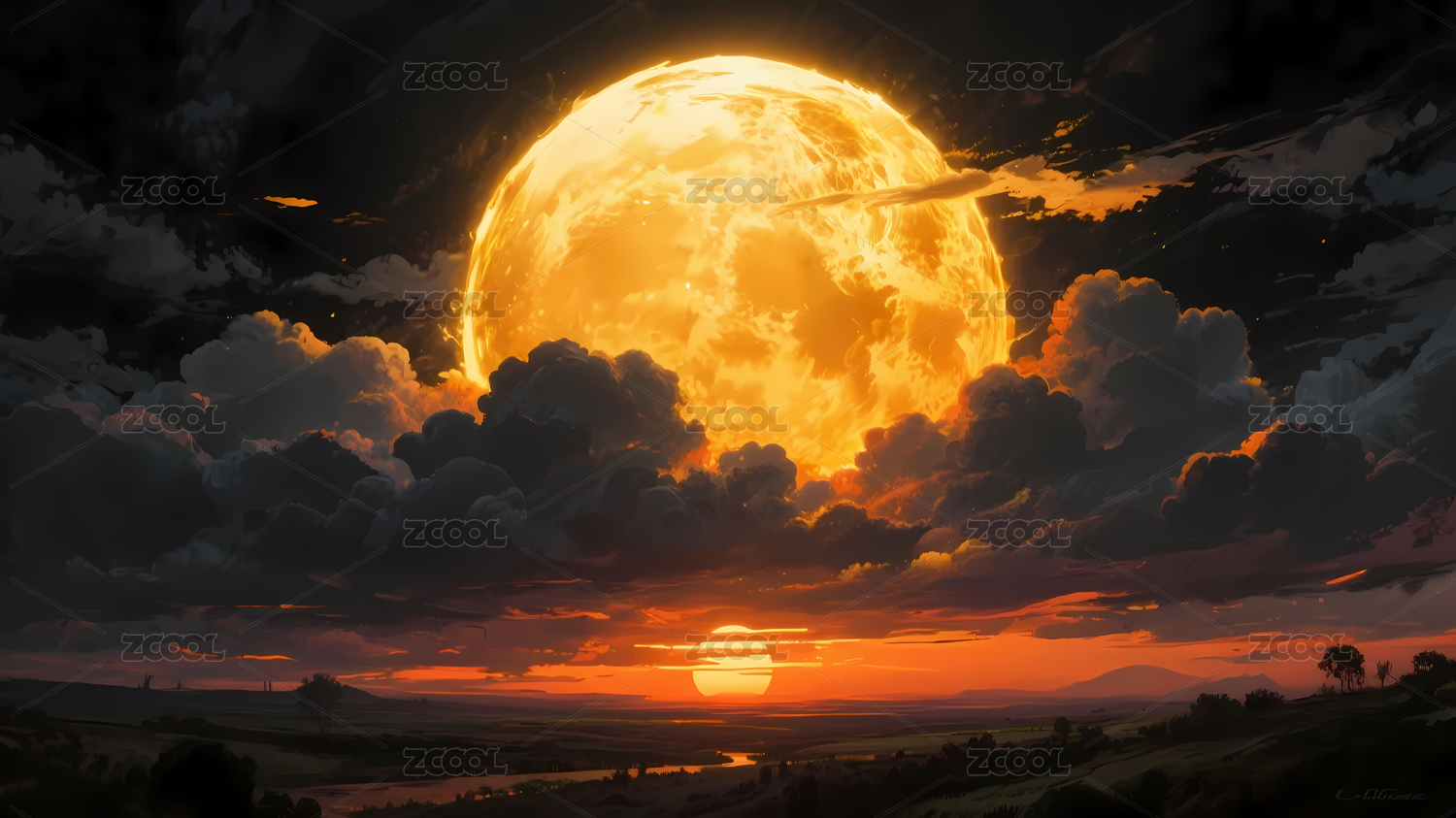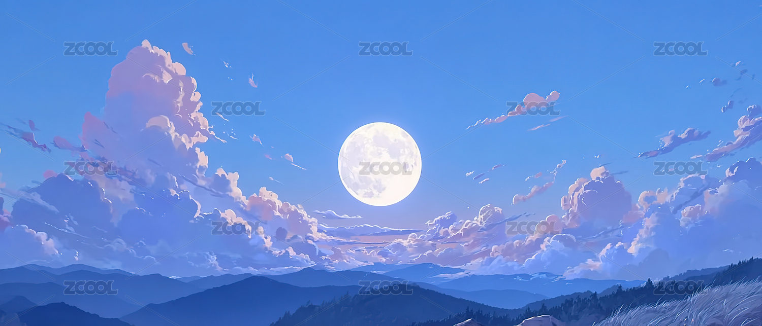 天空,高山,地形,宁静,月亮,日落,自然美,满月
